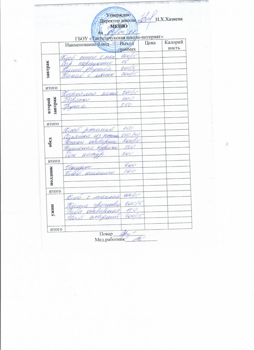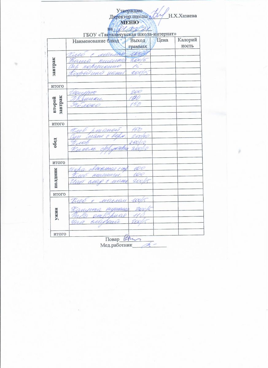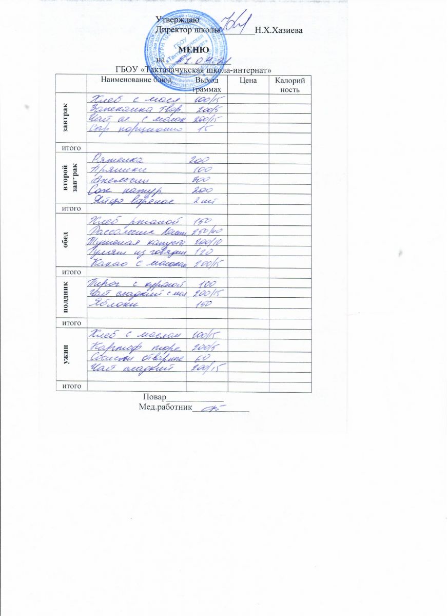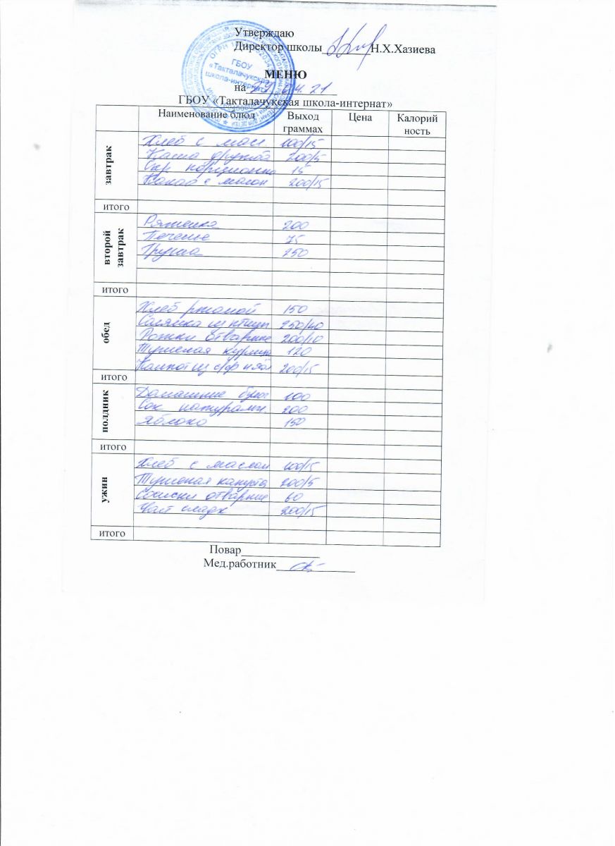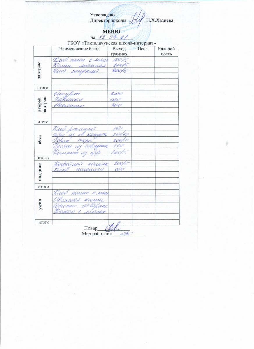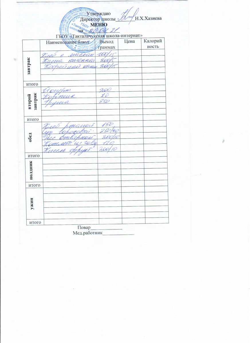 Примерное меню уч-ся 12-18 лет на осенне-зимний период 20 г.