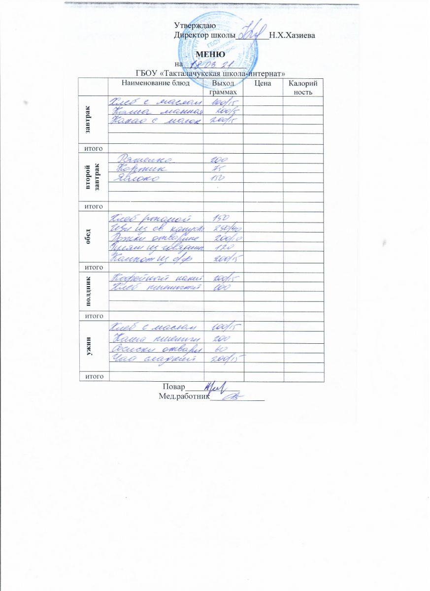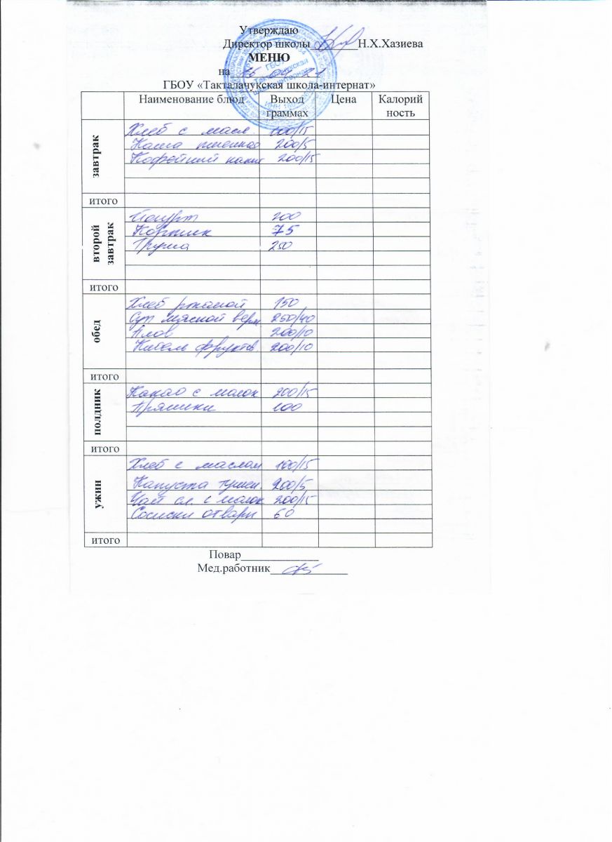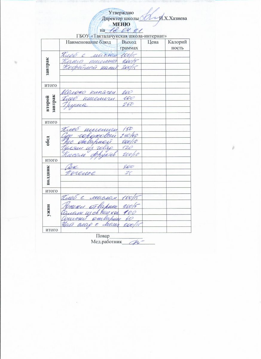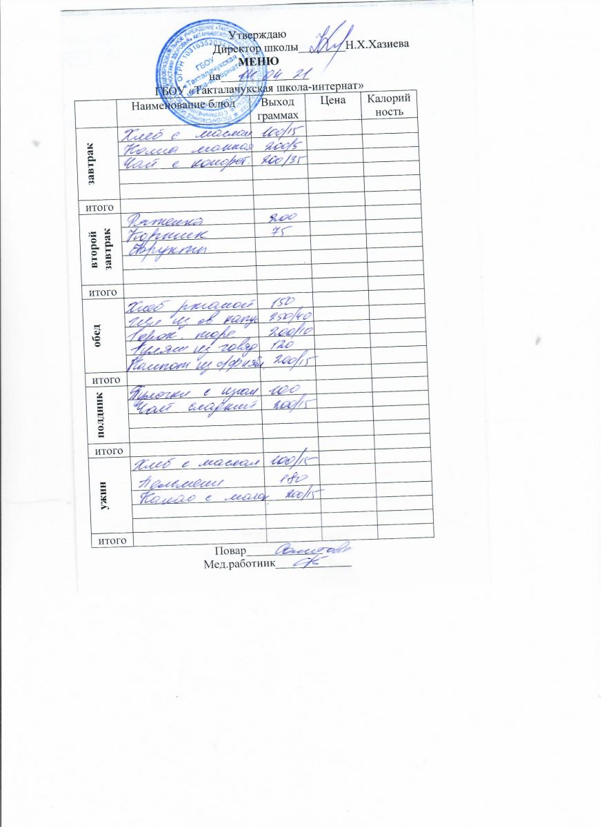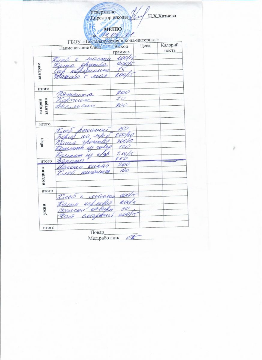 Примерное меню уч-ся 12-18 лет на осенне-зимний период 20 г.
