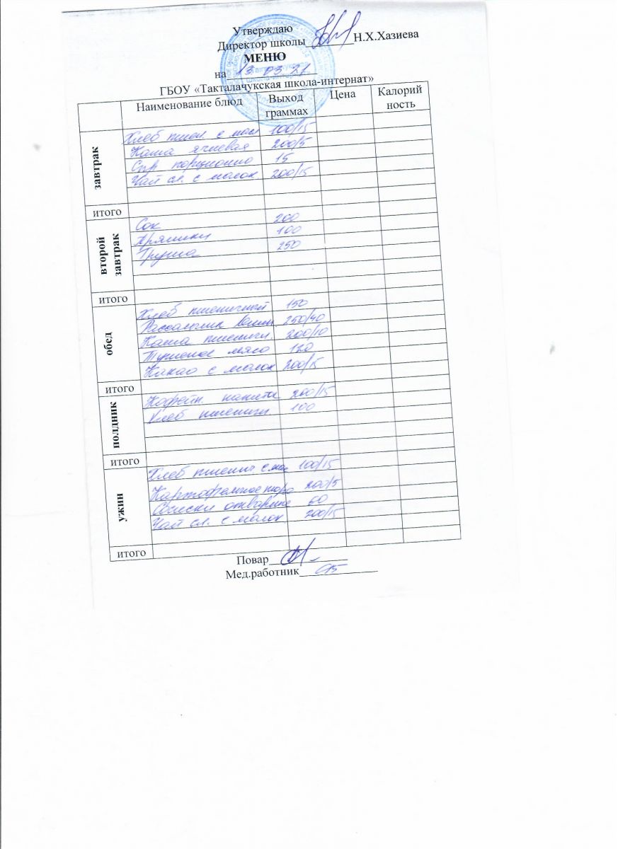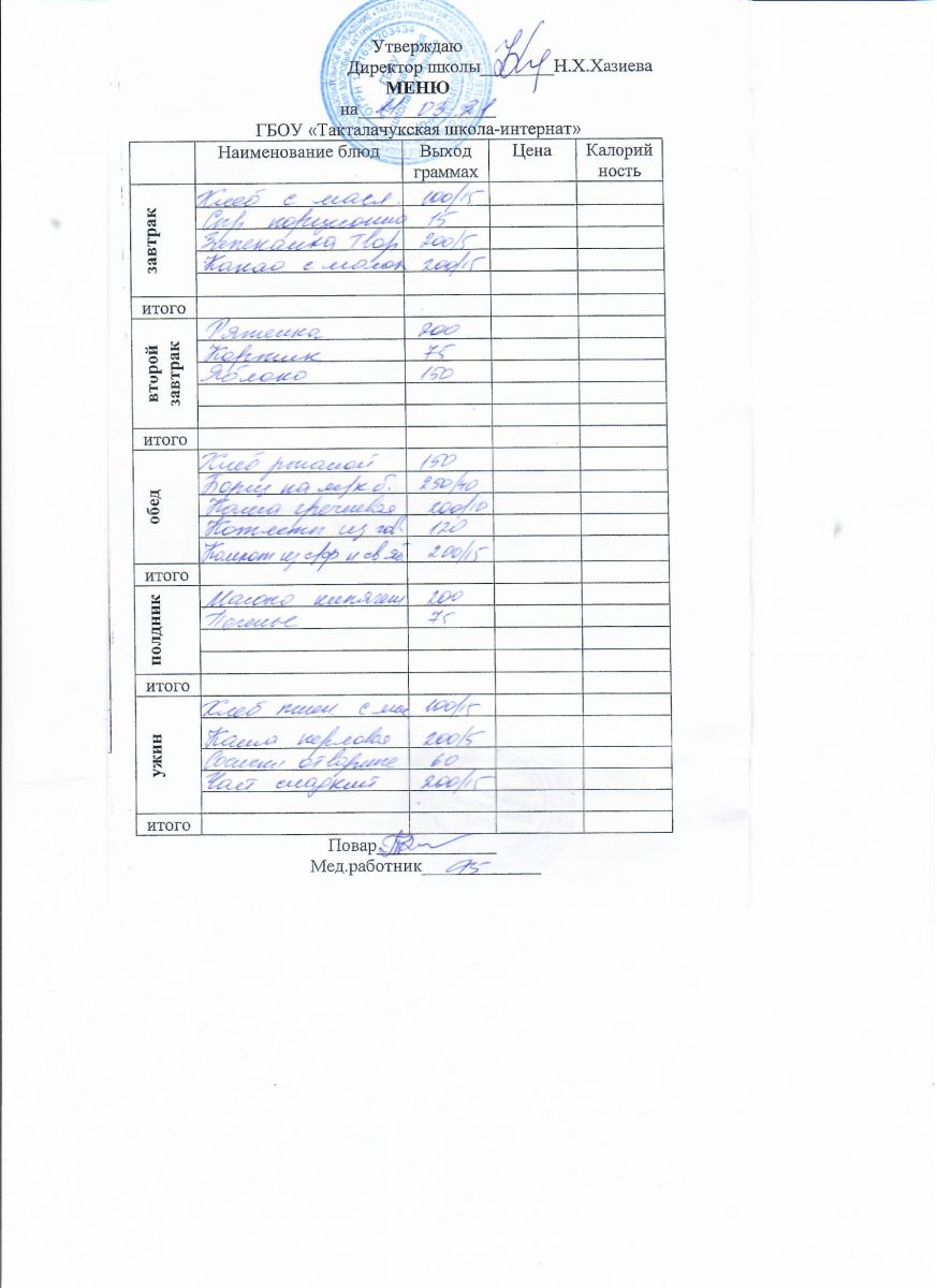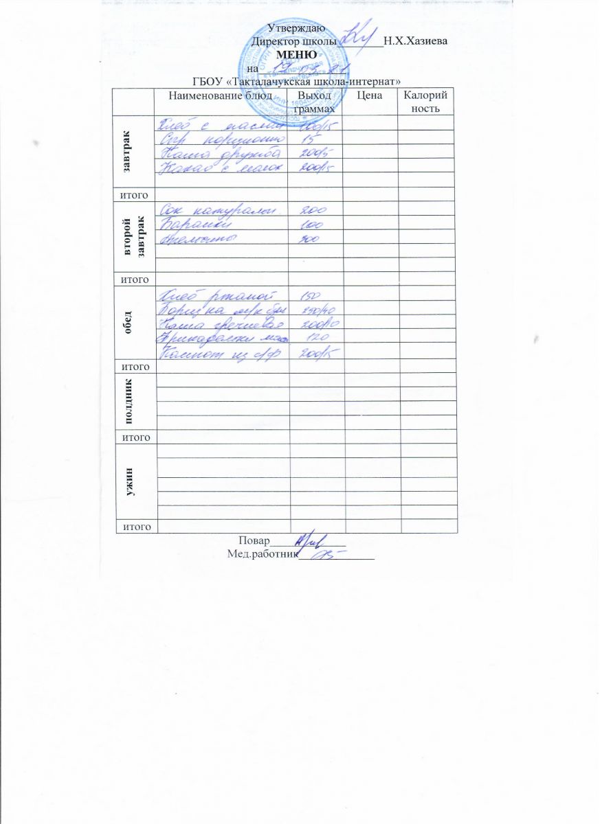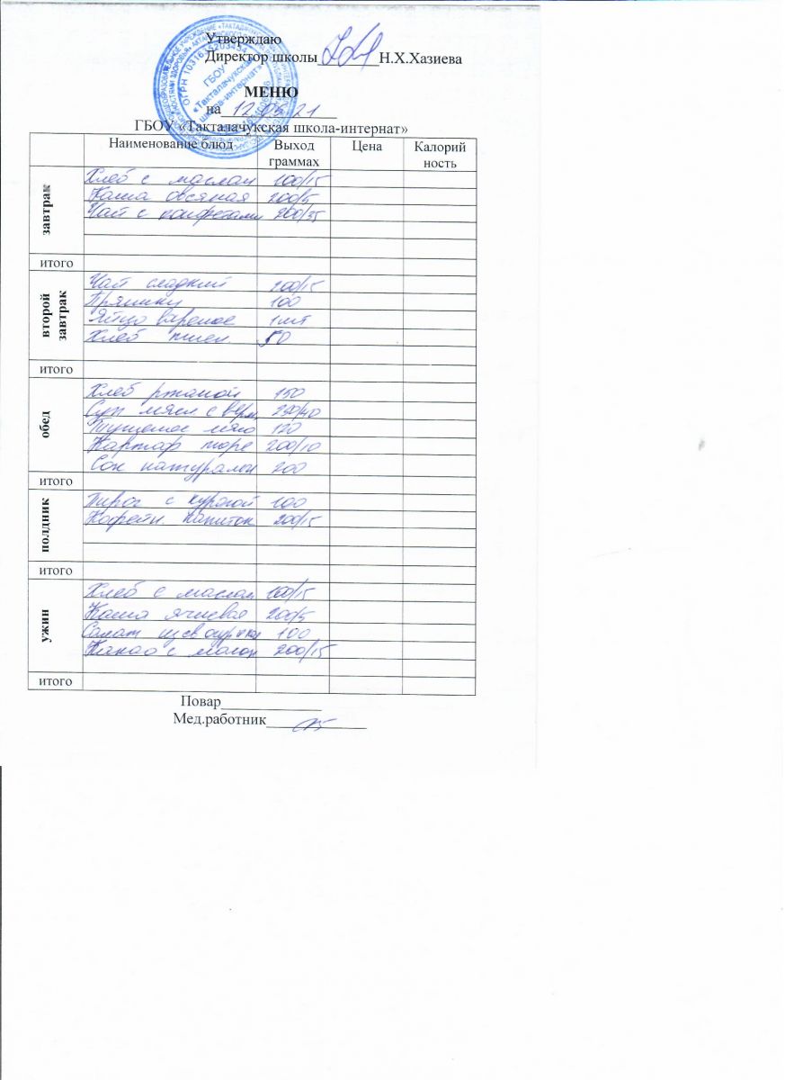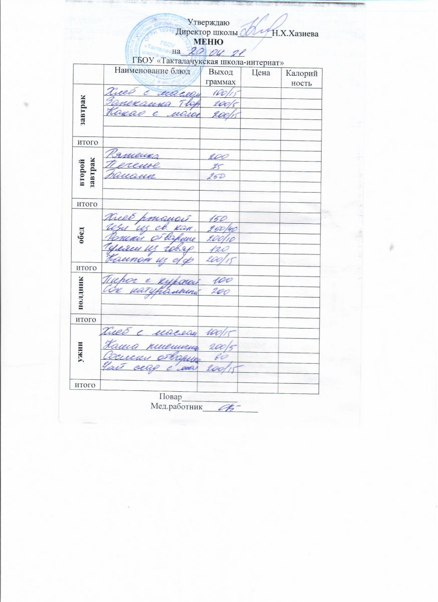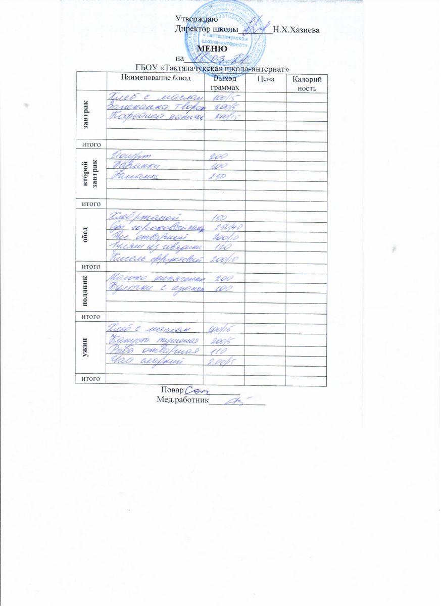 Примерное меню уч-ся 12-18 лет на осенне-зимний период 20 г.