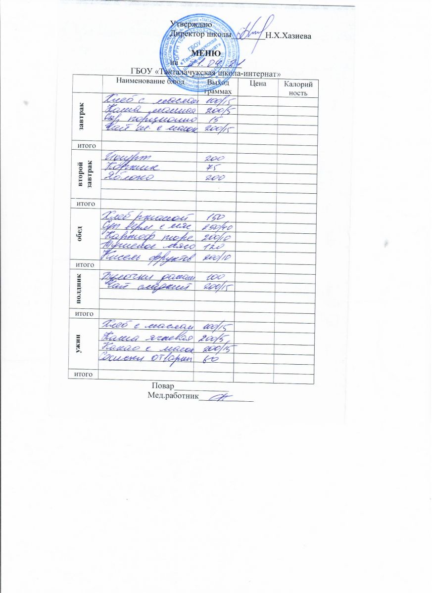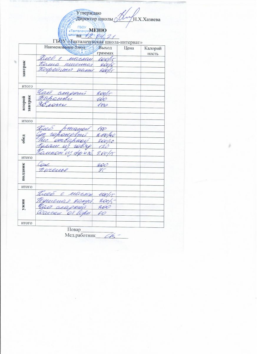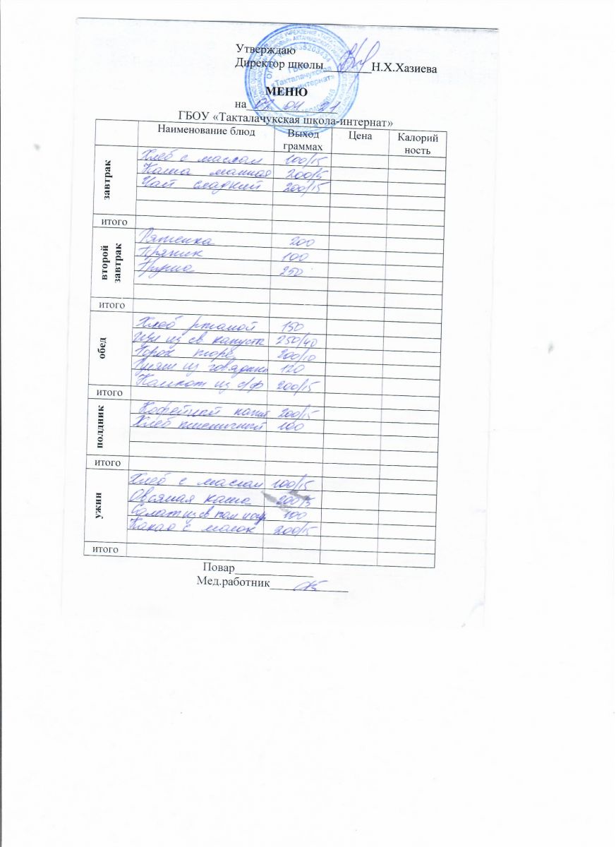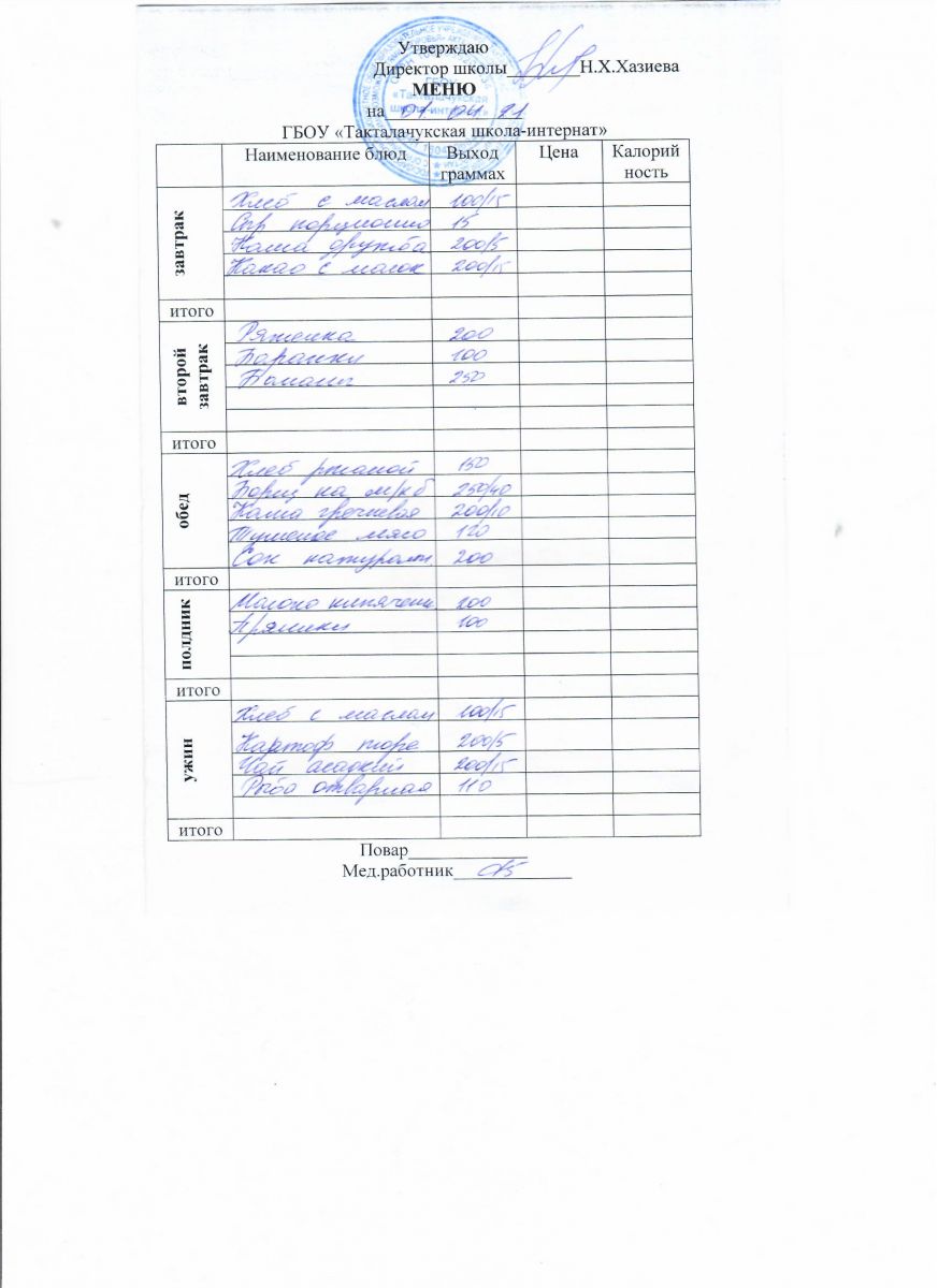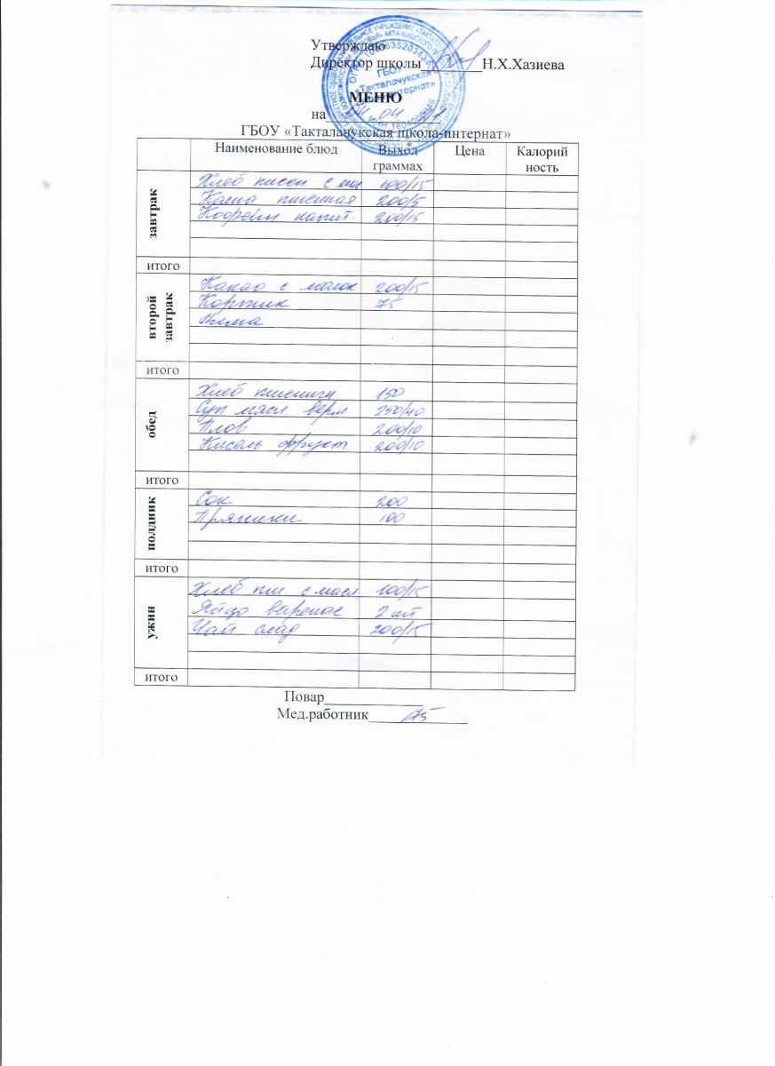 Примерное меню уч-ся 12-18 лет на осенне-зимний период 20 г.