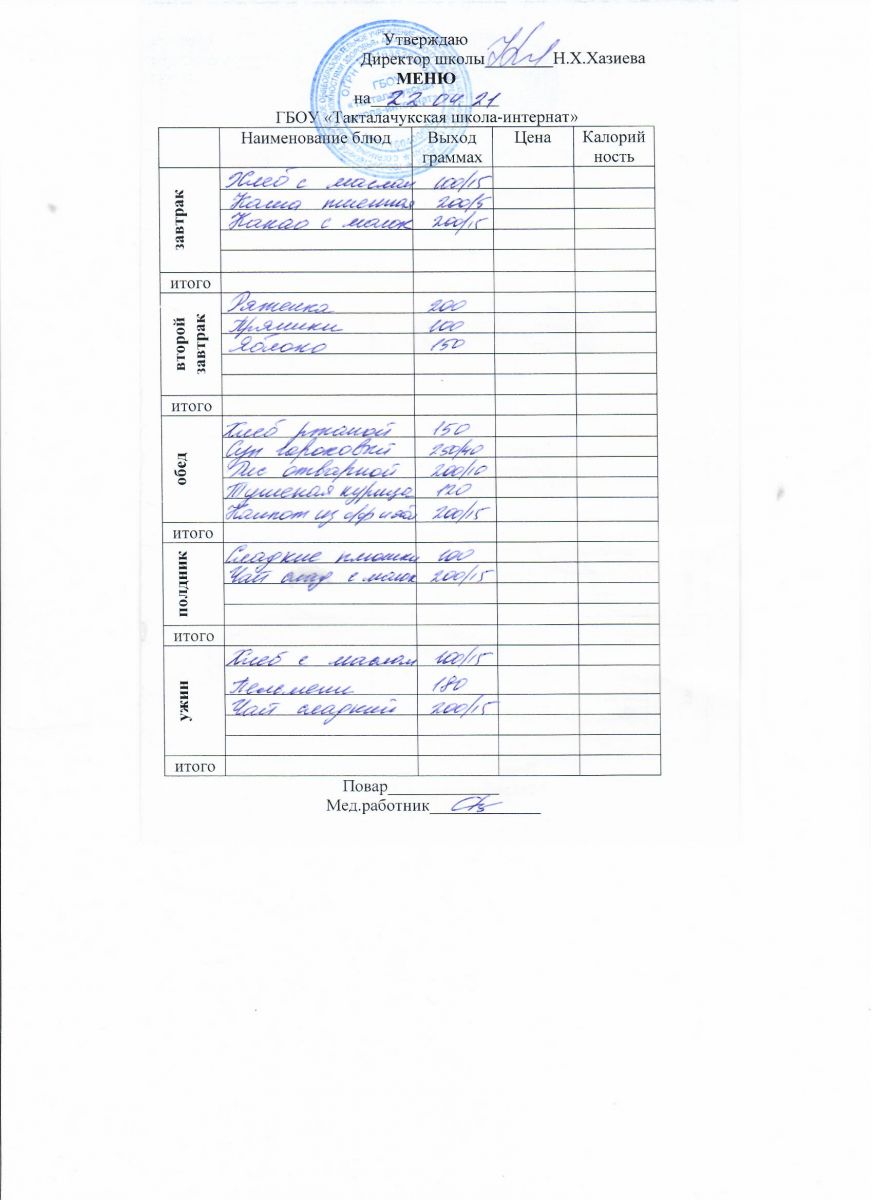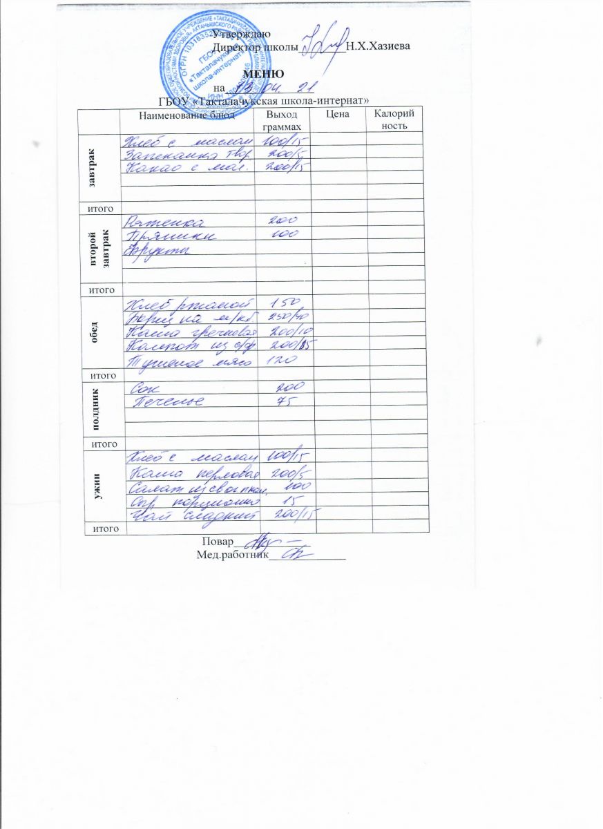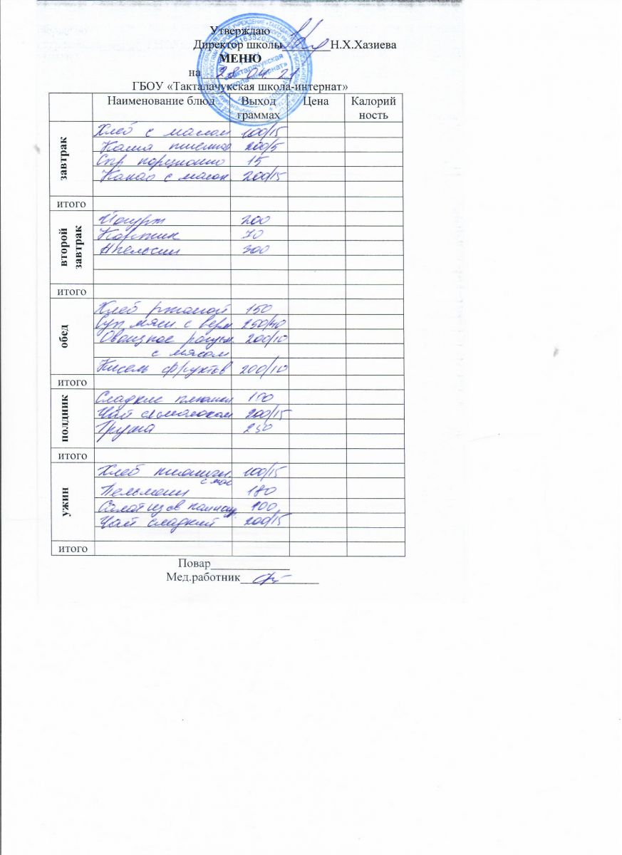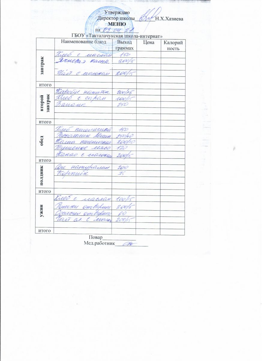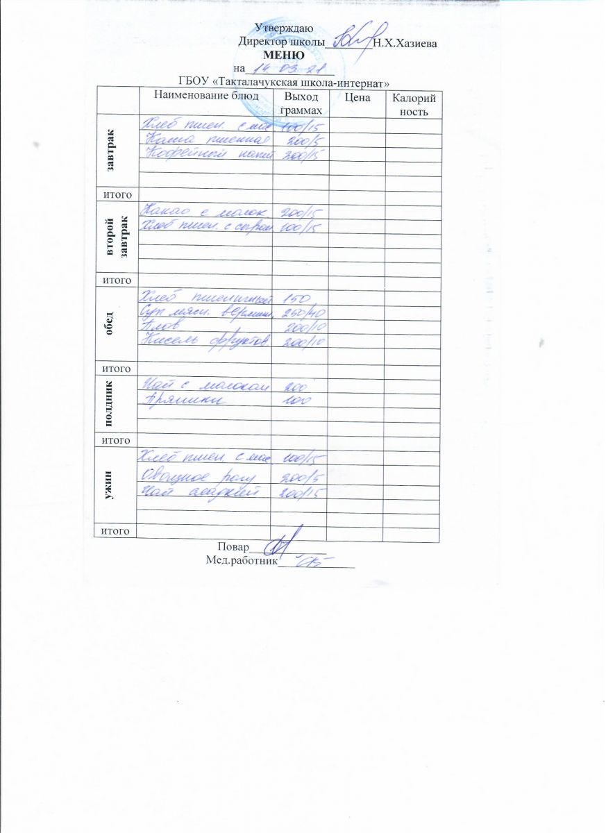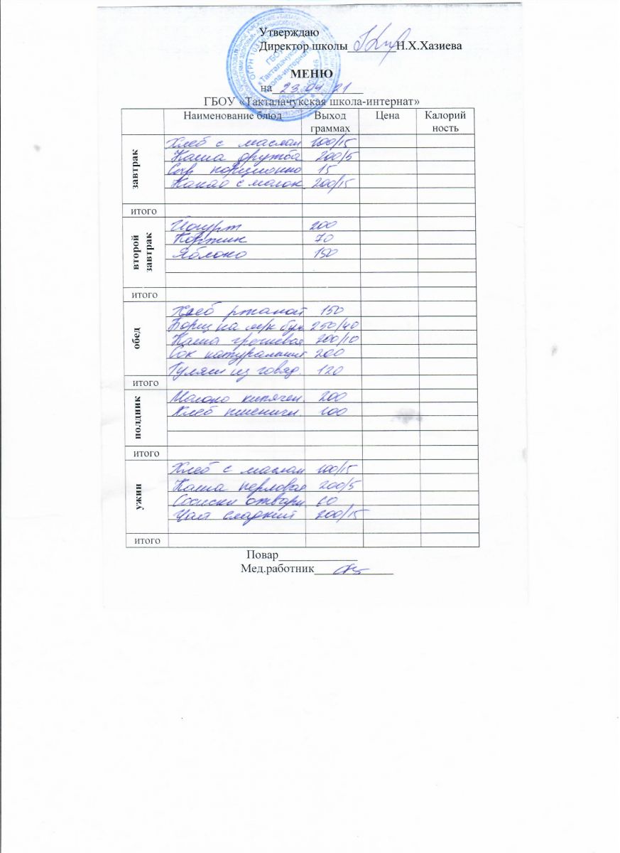 Примерное меню уч-ся 12-18 лет на осенне-зимний период 20 г.
