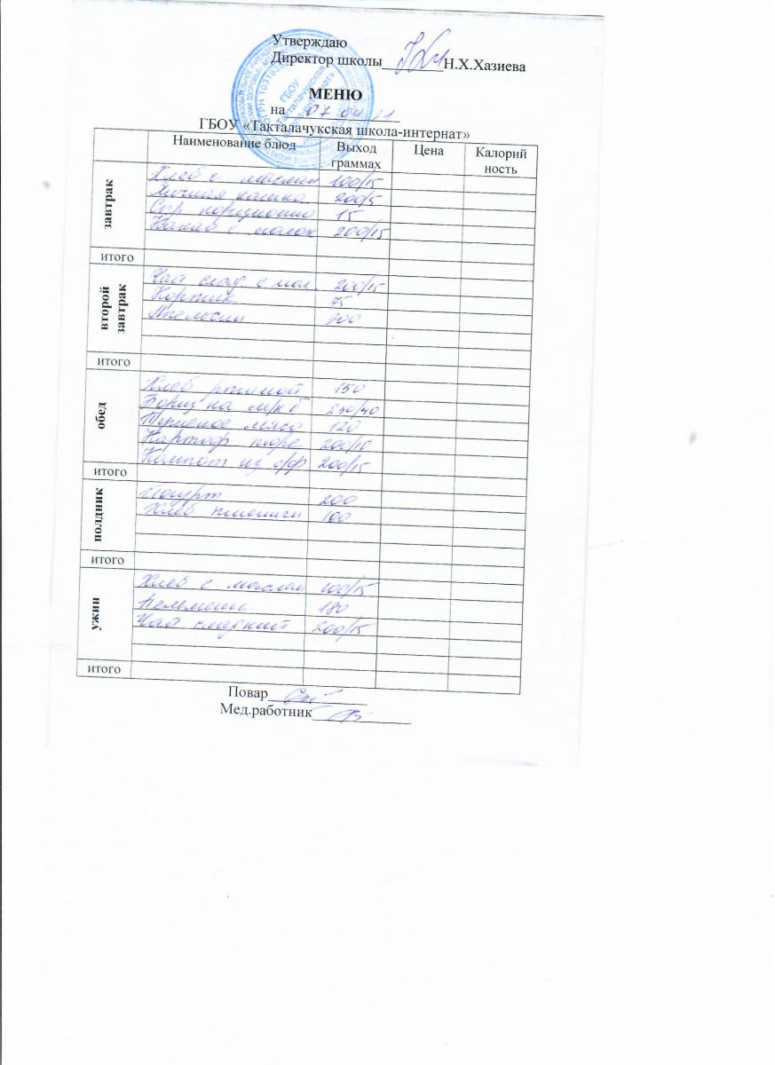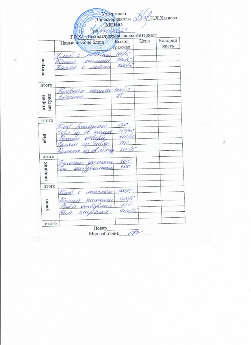 Примерное меню уч-ся 7-11 лет на осенне-зимний период 20 г.