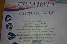 Татаро-башкирская национальная борьба 05.04.2017 23-24 марта ученик 5 класса Нургалиев Айзат знаял 1 место в районных соревнованиях по татаро-башкирской национальной борьбе на призы Главы Актанышского муниципального района среди юношей 1999 года рождения и моложе в весовой категории до 28 кг.