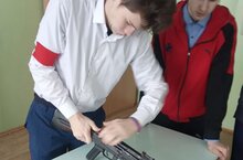 Хәрби -патриотик айлык кысаларында мәктәптә төрле чаралар утә. 8-9 сыйныф укучылары арасында автоматны сутеп җыю буенча ярыш утте. Иң җитез һәм төгәл укучылар билгеләнде. Егетләр арасында : 1 урын- Суфиянов Рафаил (9 сыйныф) ; 2 урын- Исмагилов Ислам (8 сыйныф) ;3 урын- Галимов Илдус. Кызлар арасында: 1 урын-Асылбаева Ангелина; 2 урын- Камалова Рузилә. Физкультура укытучысы: Тазиев Х. Х. В рамках военно -патриотического месячника в нашей школе стали проводиться различные мероприятия. 30 января состоялось соревнование среди учащихся 8-9 классов по разборке автомата . По результатам выявлены самые быстрые и точные. Среди мальчиков: 1 место - Суфиянов Рафаил (9 класс); 2 место - Исмагилов Ислам (8 класс) ; 3 место - Галимов Ильдус(9 класс). Среди девушек: 1 место - Асылбаева Ангелина (9 класс); 2 место - Камалова Рузиля (9 класс) .Поздравляем!