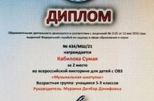 Конкурс "Музыкальная шкатулка" 29.11.2021 Ученица 6 класса Кабилова Сумая приняла участие во Всероссийской викторине "Музыкальная шкатулка" и заняла 2 место.Руководитель Мурзина Д.Д.