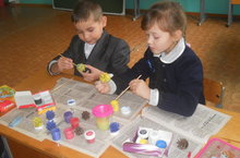 Дәрестән тыш эшчәнлек вакытында башлангыч сыйныф укучылары табигый материаллардан төрле сувенирлар ясыйлар. Ул сувенирларны "Сөмбелә" бәйрәменә әзерлиләр. Һәр укучы да күңел биреп бик тырышып эшли.