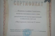 Татарстан Республикасы мәгариф һәм фән министрлыгы тарафыннан Лениногорский шәһәрендә “ 21 нче гасыр укытучысы остаханәсе” исеме астында укытучылар өчен уздырылган фәнни - гамәли конференциядә татар теле һәм әдәбияты укытучысы Нуриева А.Г. татар теле дәресләрендә Сингапур методикасы кулланып төзелгән дәрес эшкәртмәсе тәкъдим итте. “Сингармонизм законы” темасына төзелгән бу эш конференция материаллары буенча төзелгән җыентыкка кертеләчәк.