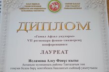 7 нче тапкыр оештырылучы "Г.Афзал укулары" фәнни-тикшеренү конференциясендә башлангыч класс укытучысы Исламова А.Ф. катнашты һәм лауреат дипломына лаек булды. Котлыйбыз!