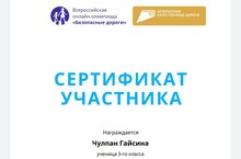 "Хәвефсез юллар" рәсәйкүләм онлайн-олимпиада башлангыч класс укучылары арасында үткәрелде. 3 нче класс укучысы Гайсина Ч. Учи.ру платформасында уздырылган әлеге олимпиадада катнашып, оештыру комитеты тарафыннан тапшырылган сертификатка ия булды. Укытучы - Шәемова З.Ф.