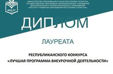 Республикакүләм "Иң яхшы дәрестән тыш эшчәнлек программасы" конкурсында математика укытучысы Гыйльфанова А.М. лауреат дипломына лаек булды.