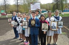 Җиңү бәйрәмендә укучылар “Үлемсез полк” дип аталган акциягә катнаштылар. Сугышта хәбәрсез югалган, кайтып вафат булган, тыл ветераннары булган бабаларының фотоларын тотып аларны тагын бер кат искә алдылар.