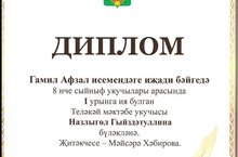 Район буенча кече класс укучылары арасында узган каллиграфия конкурсында 2нче класс укучысы Вәҗиев Рамил 3нче урынны алды.