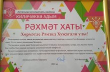 Мактау грамотасы/Почетная грамота 31.03.2021 Тырыш һәм нәтиҗәле хезмәте белән районның социаль-икътисади үсешенә лаеклы өлеш керткәне өчен технология укытучысы Әхмәтов Рәмзил Хуҗагали улы муниципаль район Башлыгының Матау грамотасы белән бүләкләнде. За добросовестный и плодотворный труд и достойный вклад в социально-экономическое развитие района учителҗ технологии Ахметов Рамзил Хузагалиевич награжден Почетной грамотой Главы муниципального района.