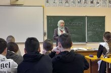 Атнаның соңгы көне әхлак дәресләреннән башланып китте. Мәслимә Илина Арсланова Шәймәрдән кызы укучыларга “Исәнләшү әдәпләре”турында сөйләде./ Последний день недели начался с уроков нравственности. Мусульманка Арсланова Илина Шаймардановна рассказала ученикам о правилах поведения при встречи.