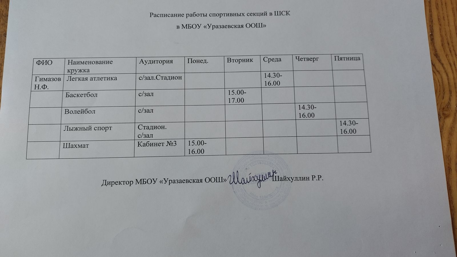 Расписание работы спортивных секций в ШСК: среда 14.00-15.15