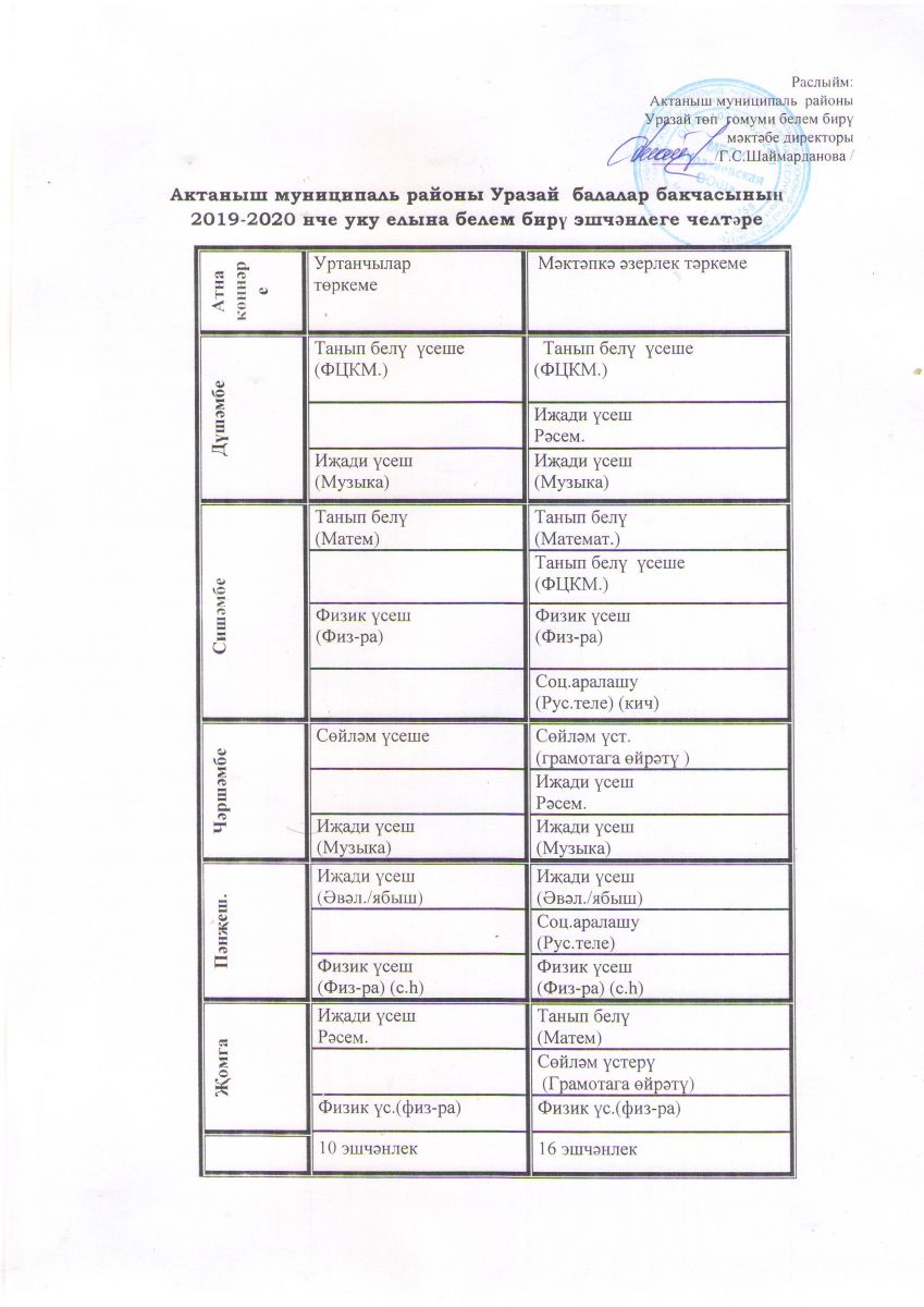 Расписание/Белем бирү эшчәнлеге 2019-20