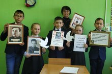 В рамках акции «Стена памяти» ученики и учителя принесли в школу фотографии родственников, участвовавших в Великой Отечественной войне. Из материалов в коридоре школы составили экспозицию.