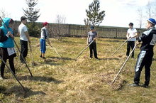 Очистка территории школы от прошлогодней травы и опавших листьев;
