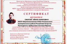 1 нче сыйныф укучысы Сибатов Айнур Арчада уздырылган республикакүләм "Яңгыравык шигырь тамчылары" конкурсында уңышлы катнашып, фән министрлыгының шаһадәтнамәсенә ия булды.Җитәкчеләре: Р.Р.Сибатова, С.Р. Шайхуллина.Котлыйбыз!