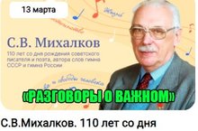 Илнең барлык мәктәпләрендә һәр дүшәмбе «Мөһим нәрсәләр турында сөйләшүләр» дәресләре үткәрелә. Төп темалар хәзерге Россиядә кеше тормышының төп аспектлары белән бәйле. «Мөһим нәрсәләр турында сөйләшүләр» нең үзәк темалары булып патриотизм һәм гражданлык тәрбиясе, тарихи мәгърифәтчелек, әхлак һ.б. тора. МБОУ-Югары Яхшый төп гомуми белем бирү мәктәбендә дәрестән тыш дәресләр циклы дәвам итә. 13 мартта укучылар белән «С.В. Михалковның тууына 110 ел» дигән темага әңгәмә узды. 2-9 сыйныф укучылары презентация белән таныштылар, видеороликлар карадылар, биремнәр үтәделәр. Сорауларга җавап биреп, С.В. Михалков турында күп яңалыклар белделәр.