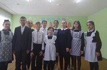 На классном часу проводился смотр строя и песни между учащимся 2-9 классов . Дети очень хорошо подготовились и тщательно продумали костюмы.