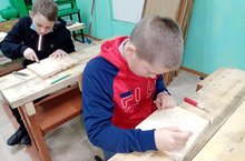 Учащиеся занимаются деревообработкой в кружке "Умелые руки".
