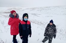 Бүген укучыларыбыз һәйкәл янына өмәгә бардылар. Һәйкәлне кардан чистарттылар.