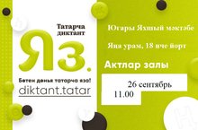 26 сентябрь, шимбә көнне, "Бөтен дөнья татарча яза" акциясе кысаларында сәг. 11.00 дә "Татарча диктант яз" чарасы уздырыла. Бу чара мәктәпнең актлар залында уздырыла. Рәхим итегез!