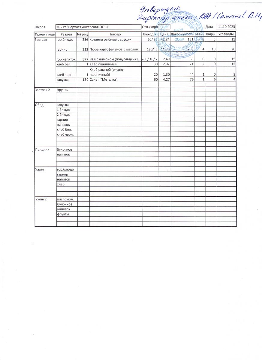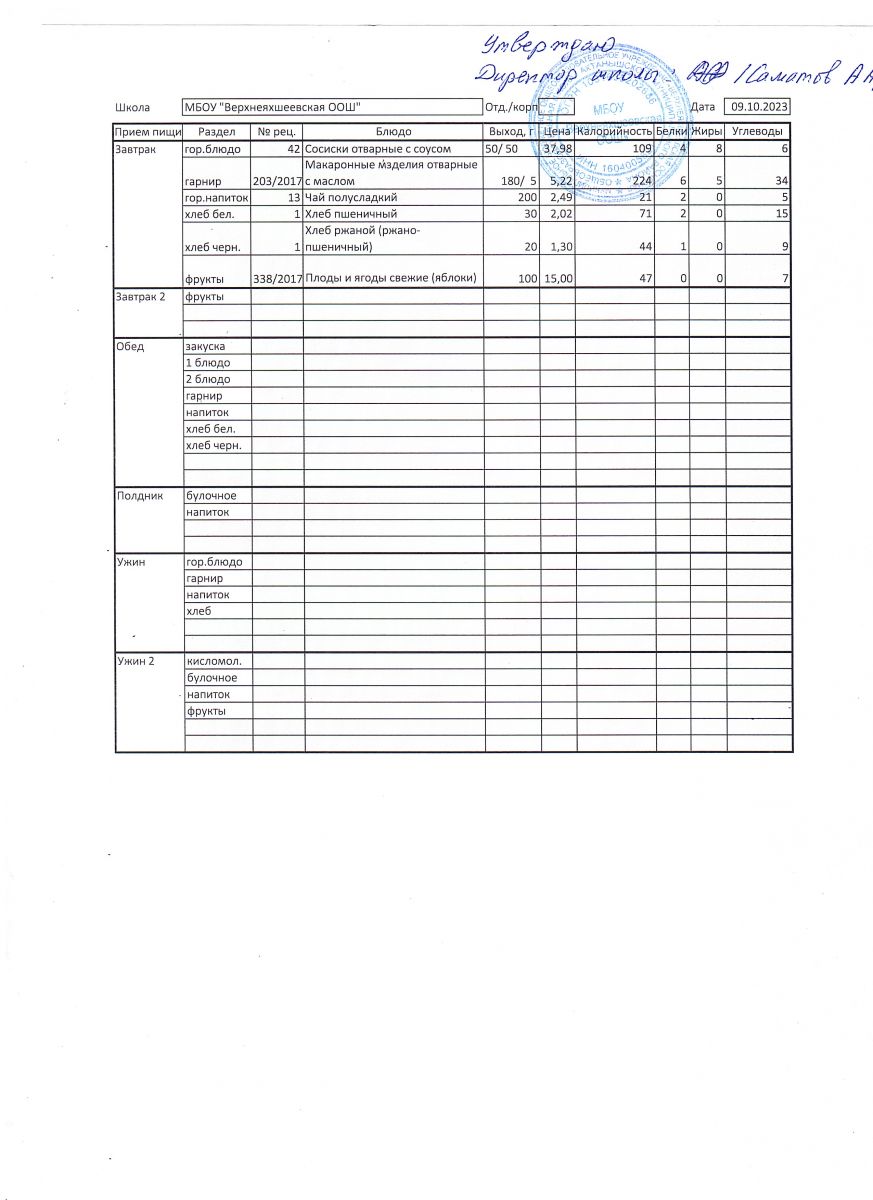 Однодневное меню на 09.10.2023 Однодневное меню на 10.10.2023 Однодневное меню на 11.10.2023