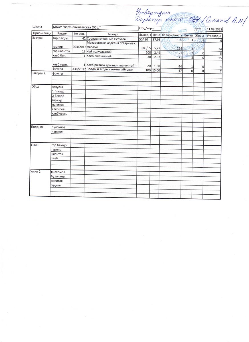 Однодневное меню на 11.09.2023 Однодневное меню на 12.09.2023 Однодневное меню на 13.09.2023