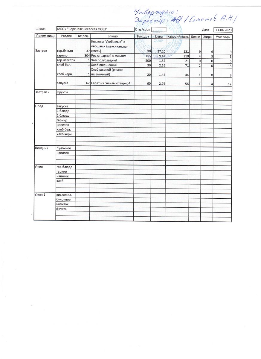 Однодневное меню на 12.10.2023 Однодневное меню на 13.10.2023 Однодневное меню на 14.10.2023