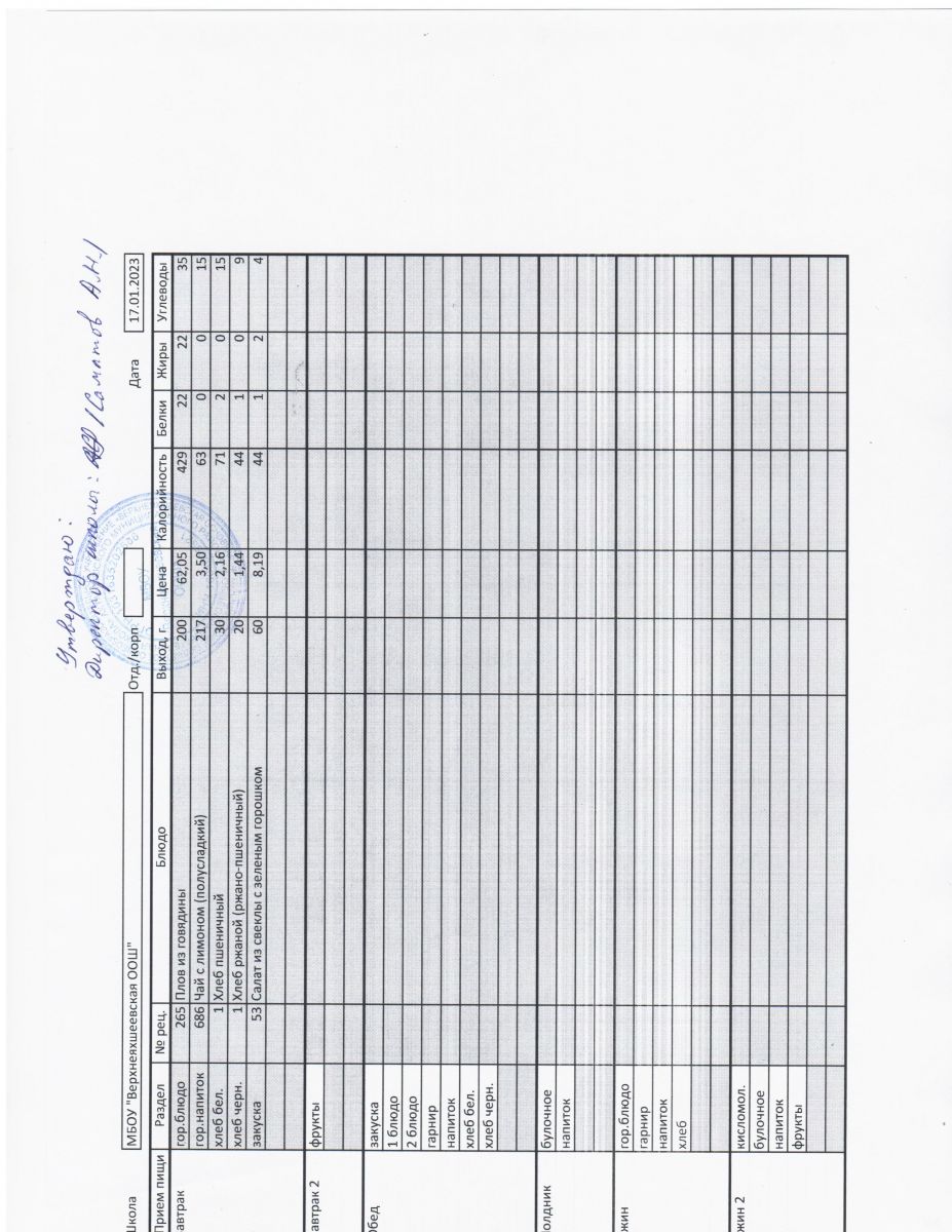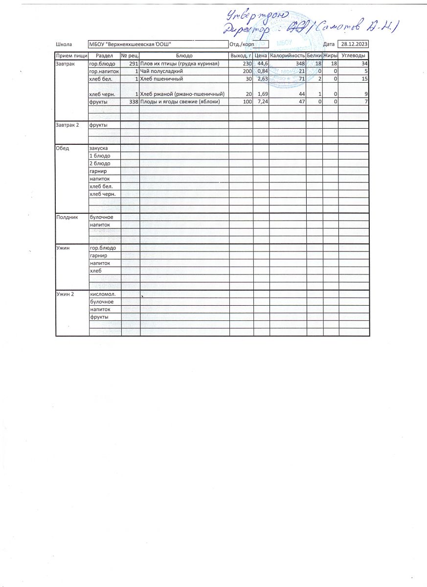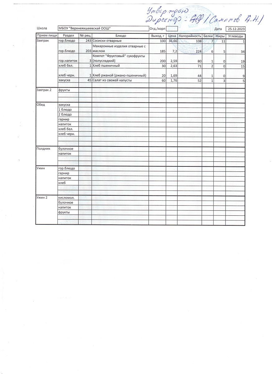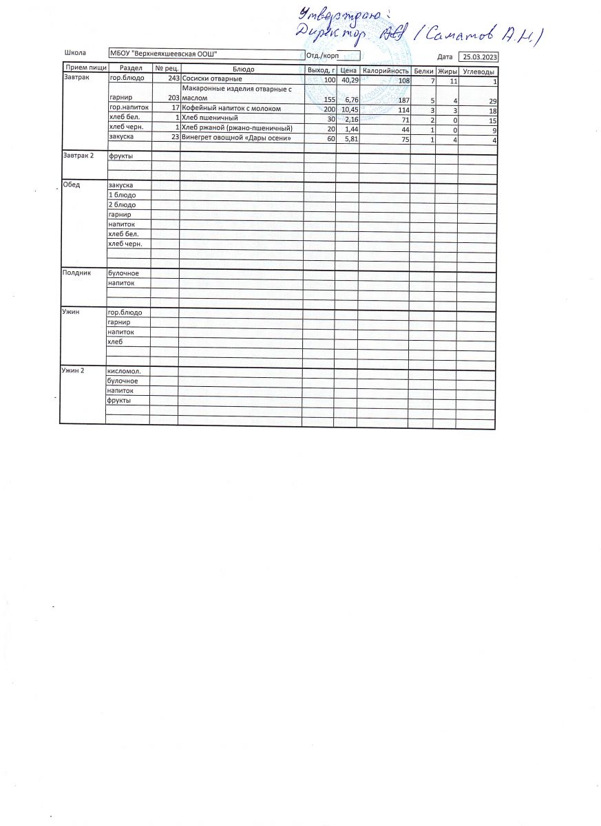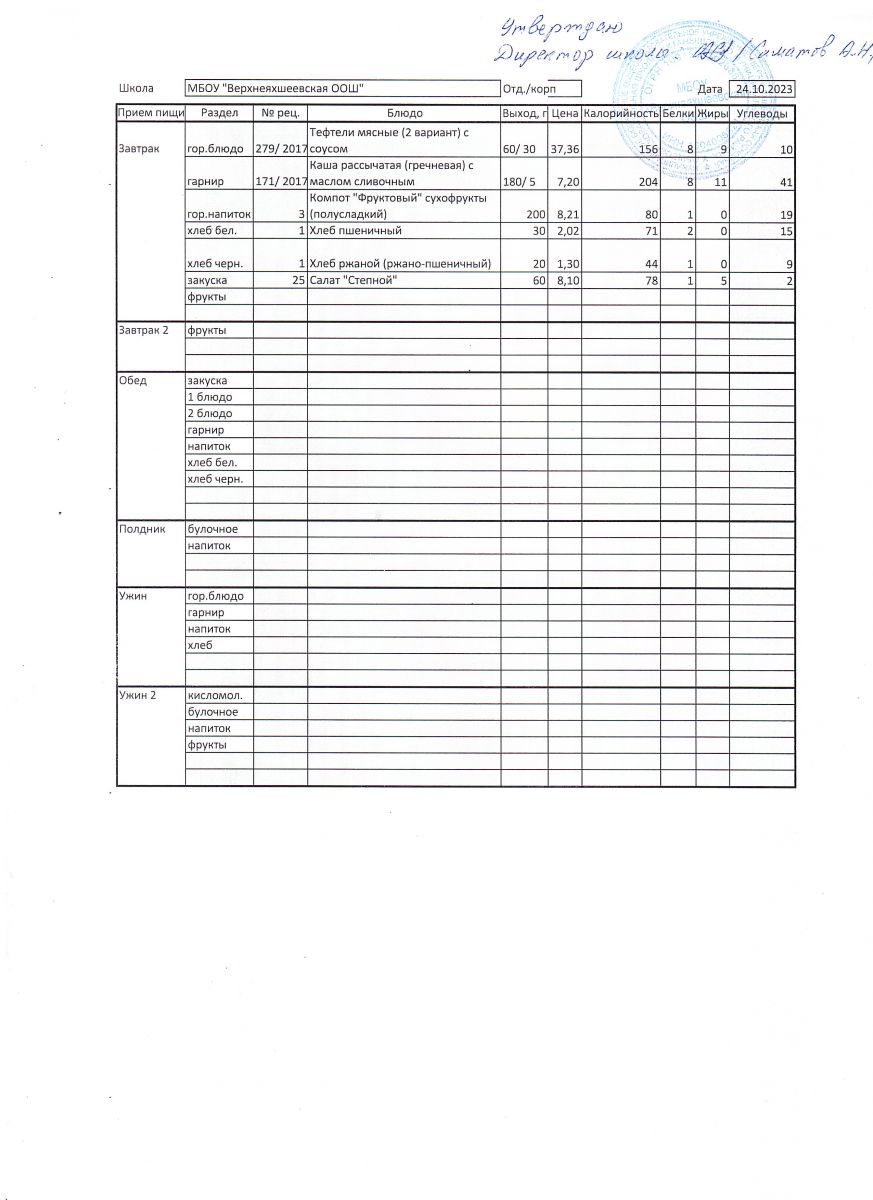 Однодневное меню на 23.10.2023 Однодневное меню на 24.10.2023 Однодневное меню на 25.10.2023