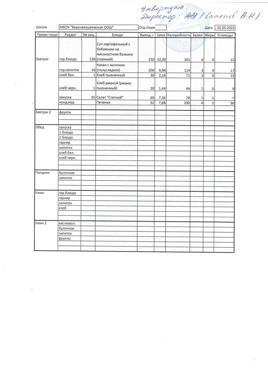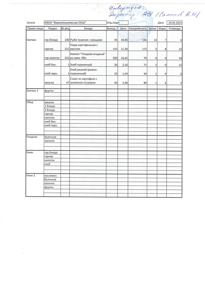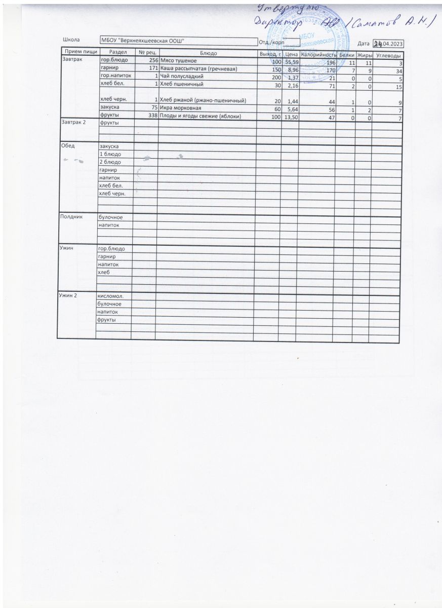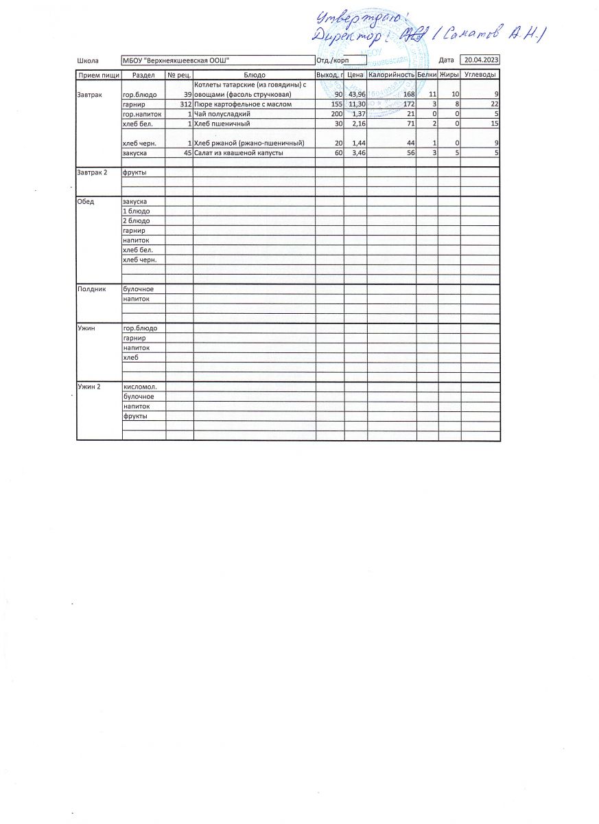 Однодневное меню на 23.10.2023 Однодневное меню на 24.10.2023 Однодневное меню на 25.10.2023