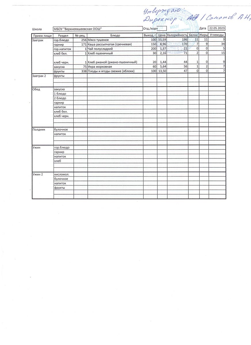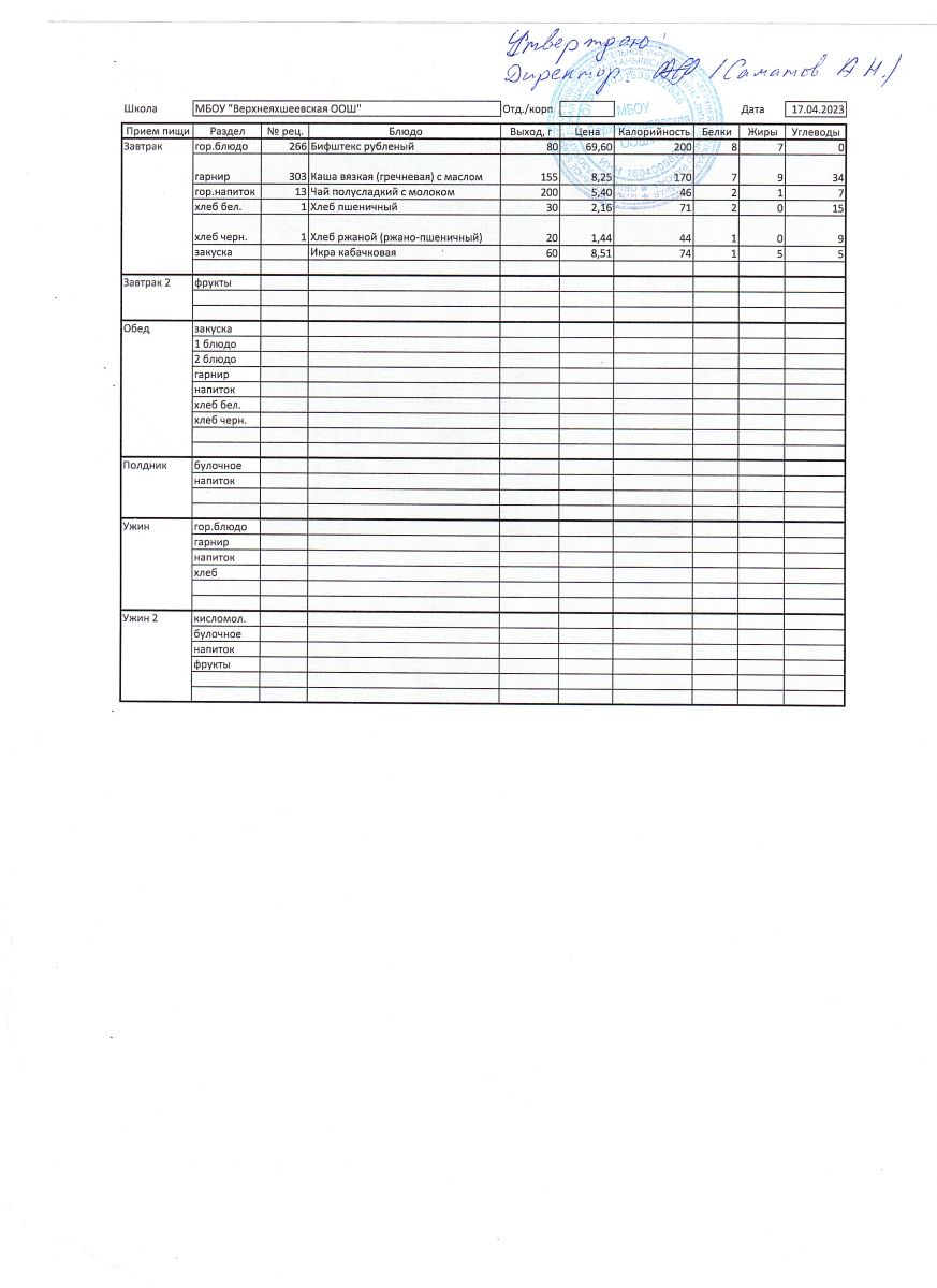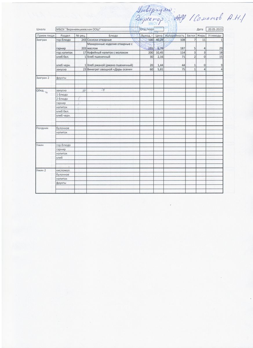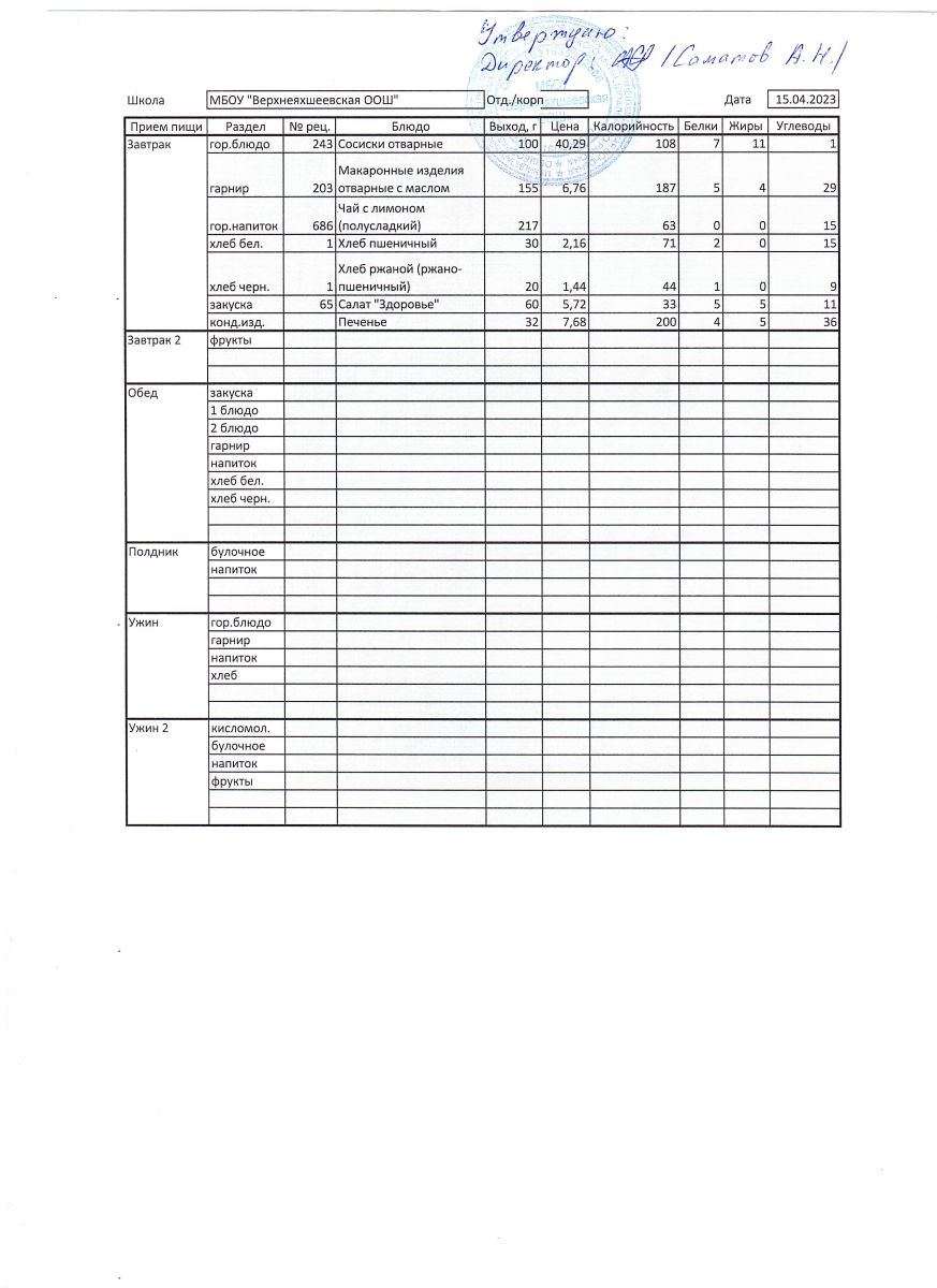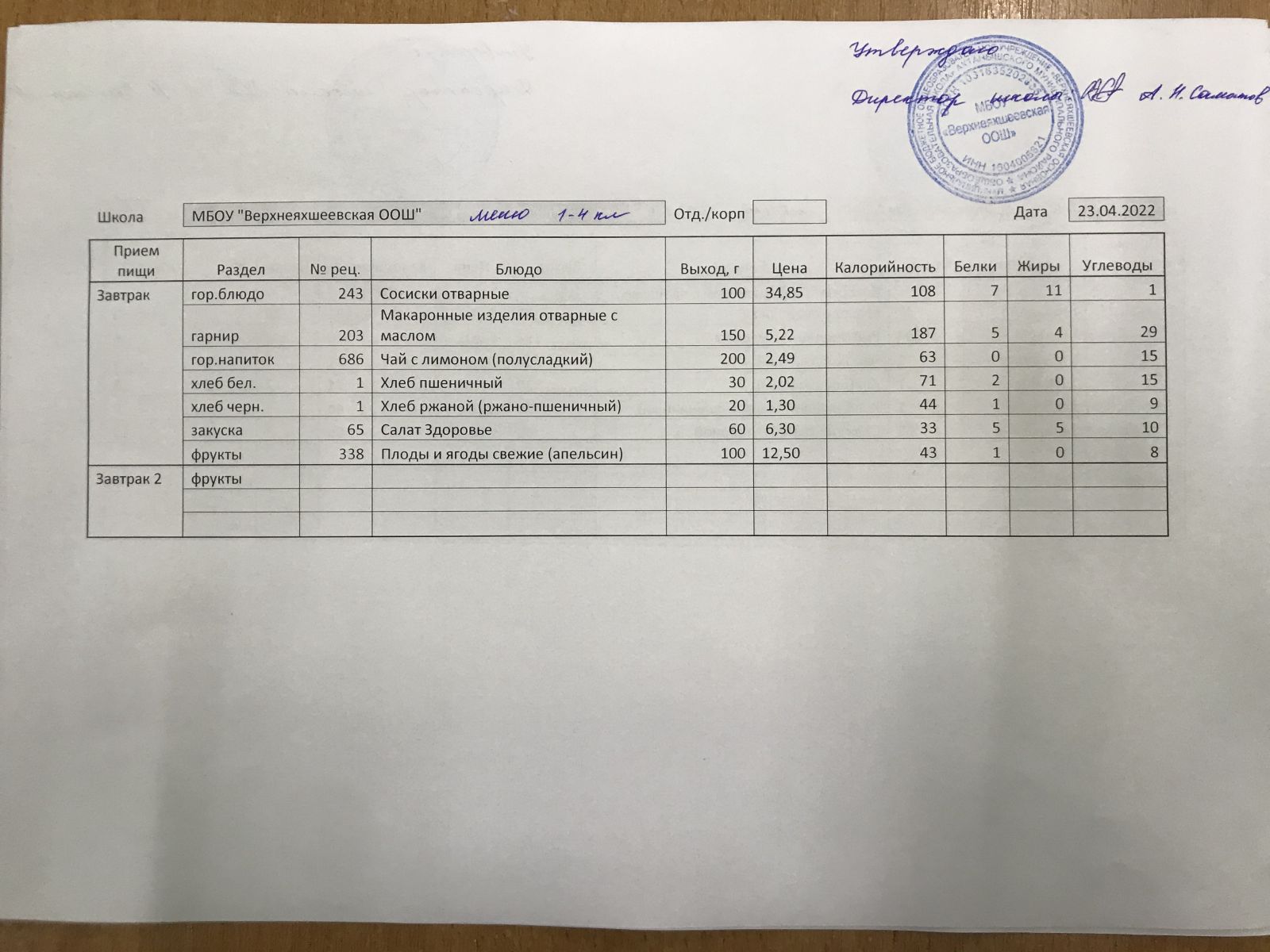 Однодневное меню на 23.10.2023 Однодневное меню на 24.10.2023 Однодневное меню на 25.10.2023