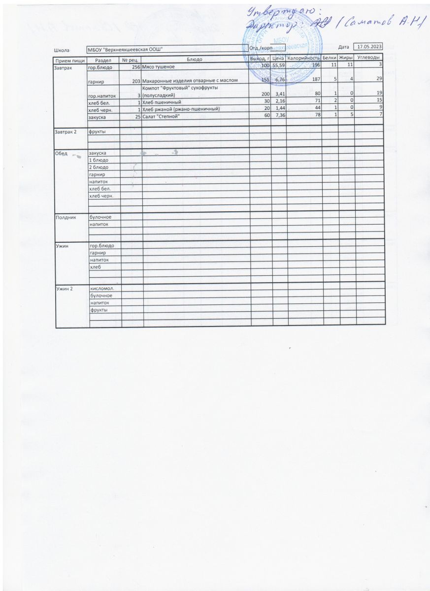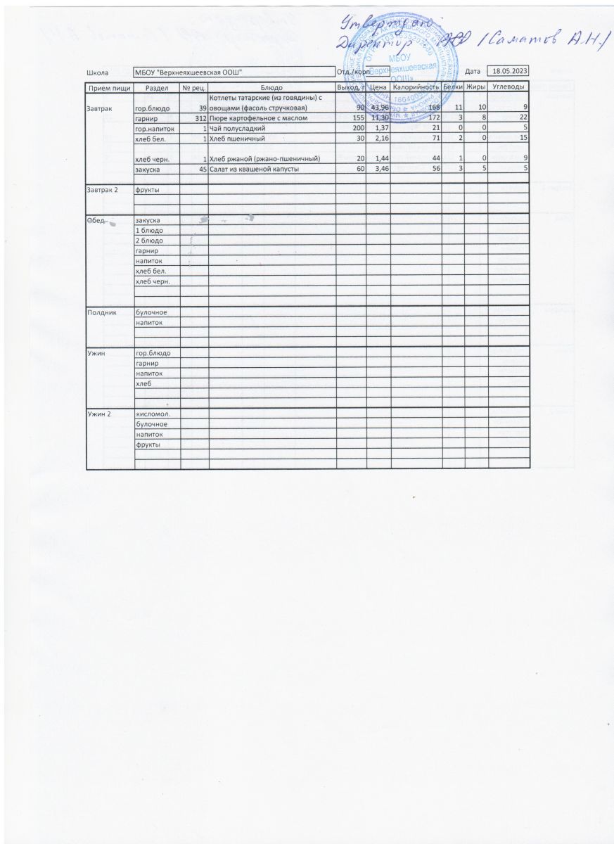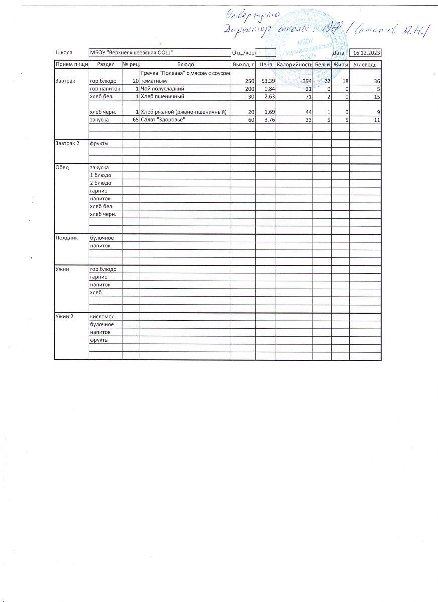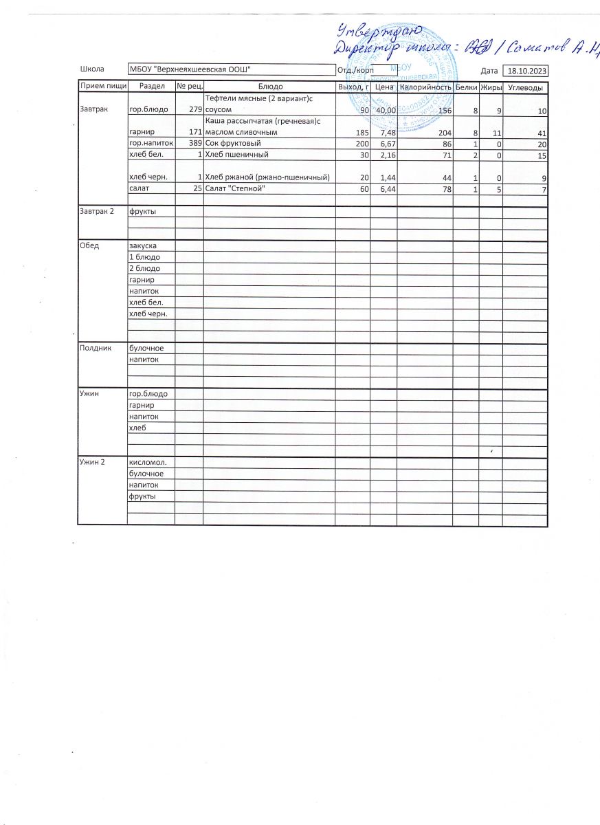 Однодневное меню на 16.10.2023 Однодневное меню на 17.10.2023 Однодневное меню на 18.10.2023