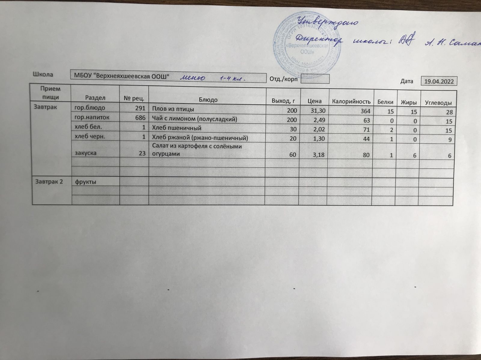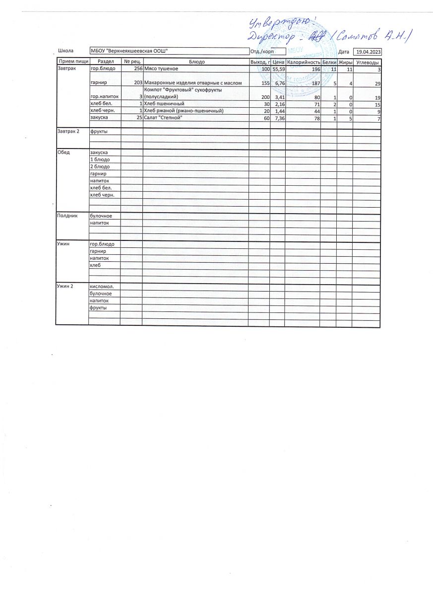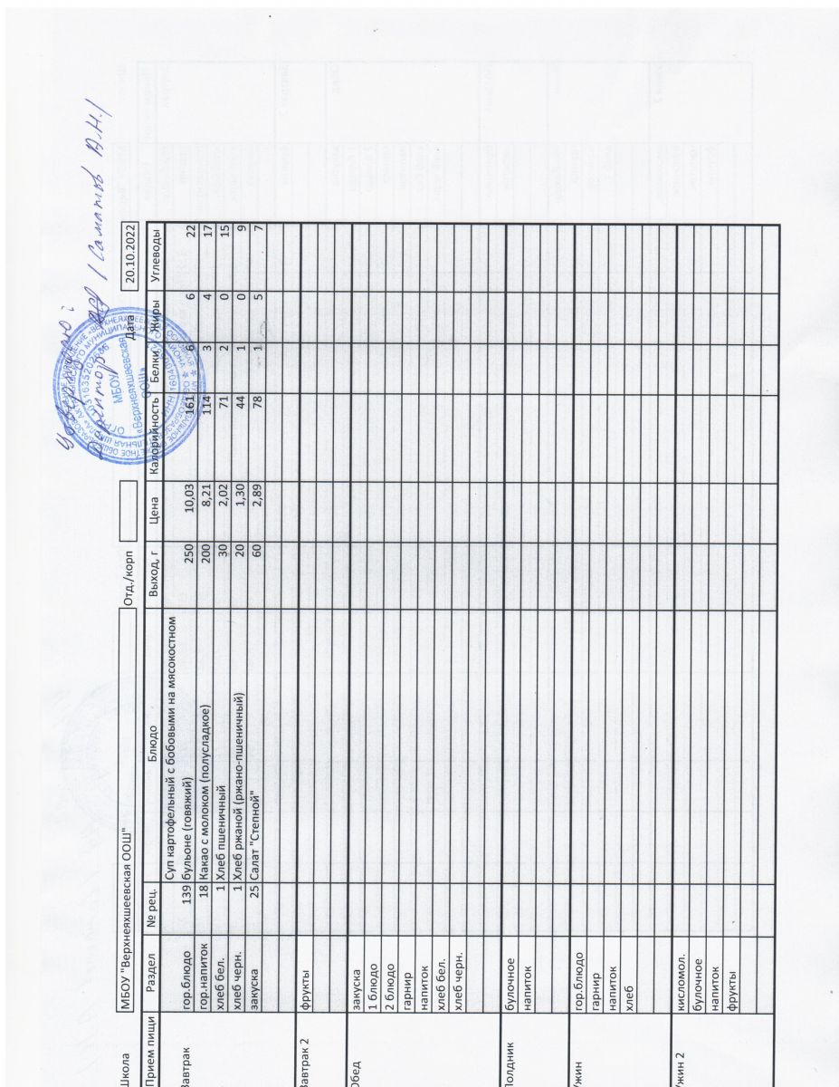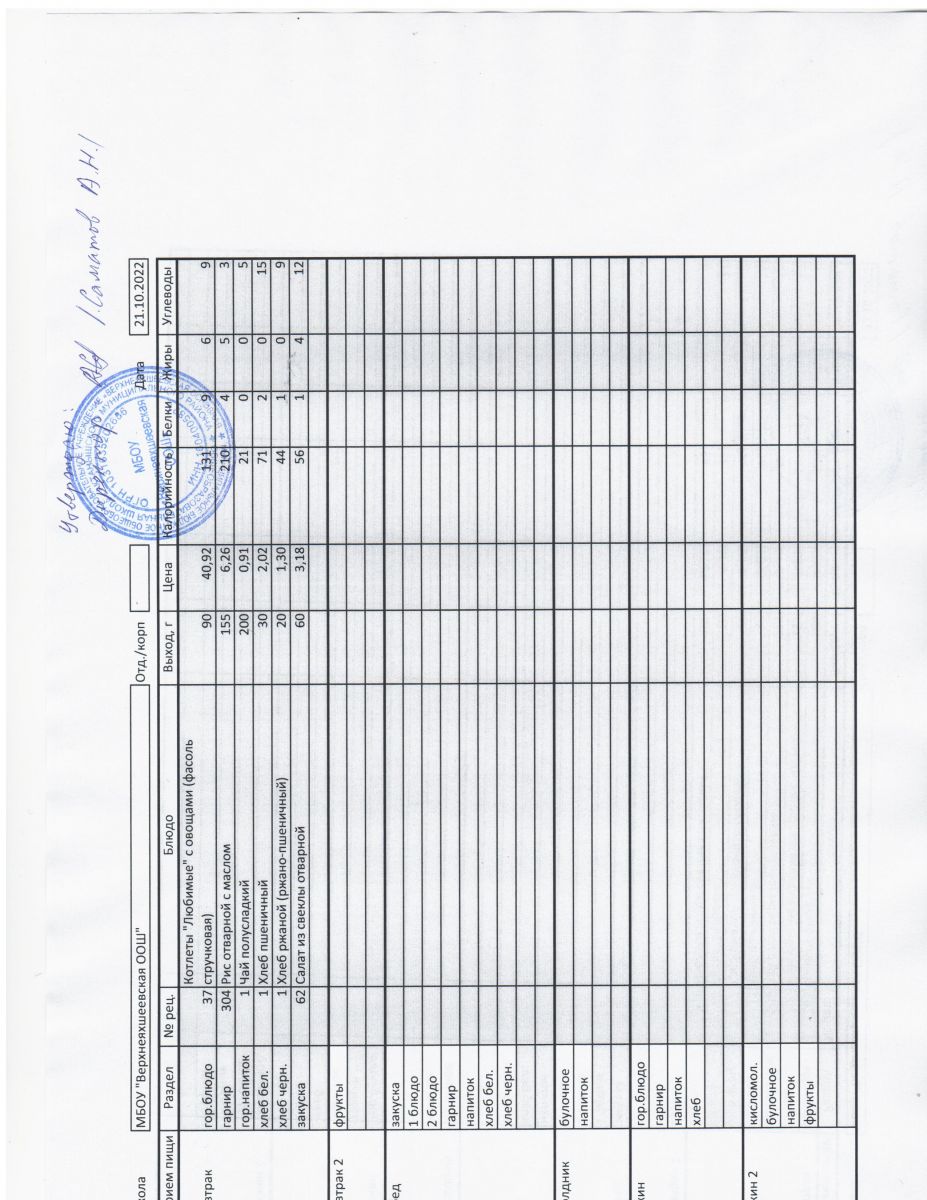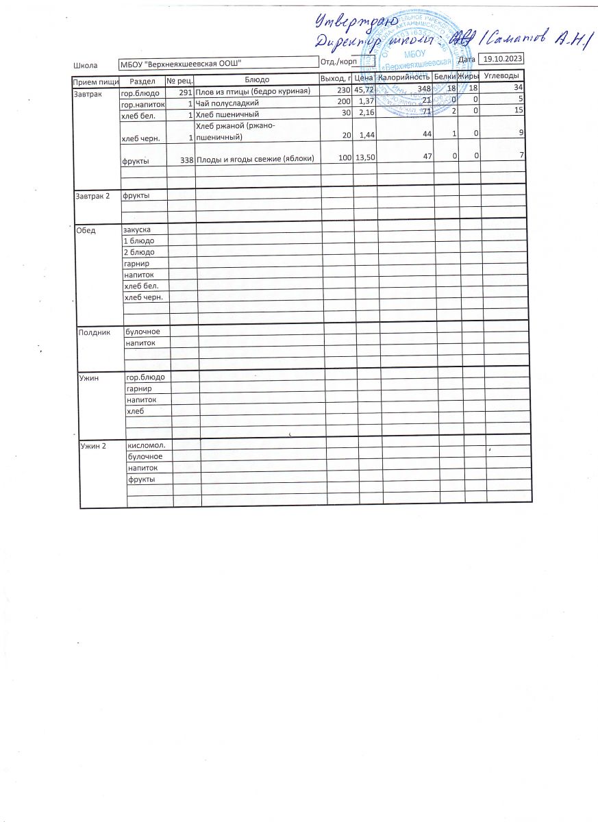 Однодневное меню на 19.10.2023 Однодневное меню на 20.10.2023 Однодневное меню на 21.10.2023