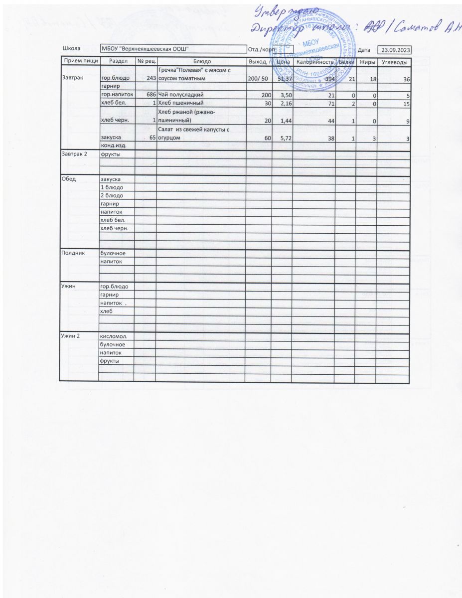 Однодневное меню на 21.09.2023 Однодневное меню на 22.09.2023 Однодневное меню на 23.09.2023