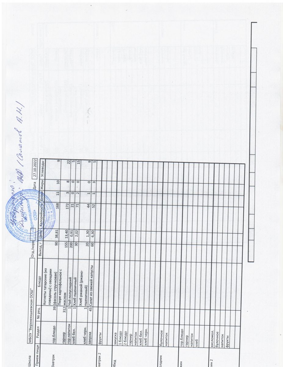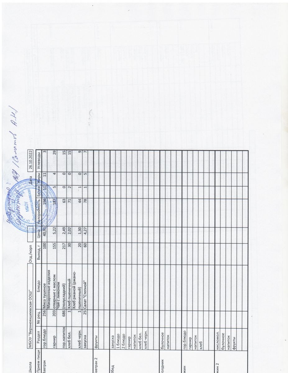 Однодневное меню на 26.10.2023 Однодневное меню на 27.10.2023