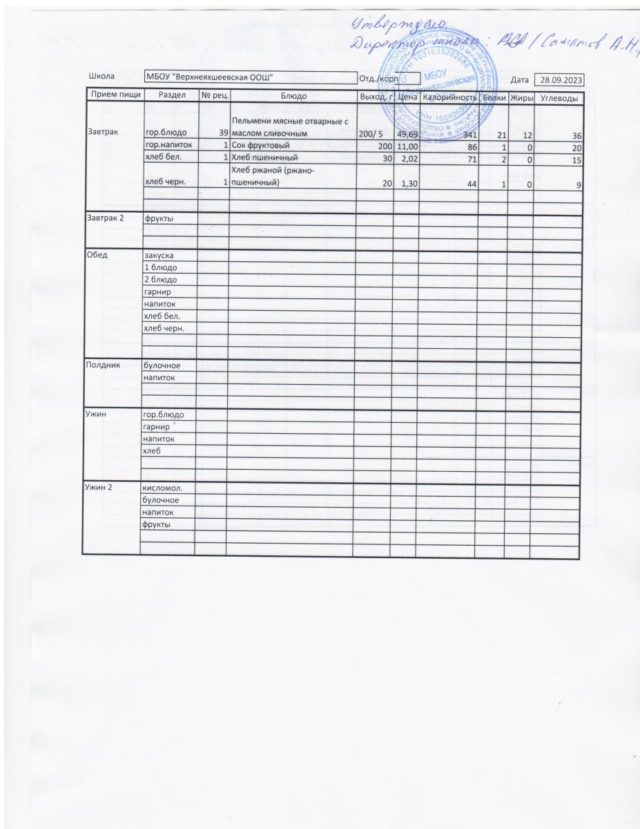 Однодневное меню на 28.09.2023 Однодневное меню на 29.09.2023 Однодневное меню на 30.09.2023