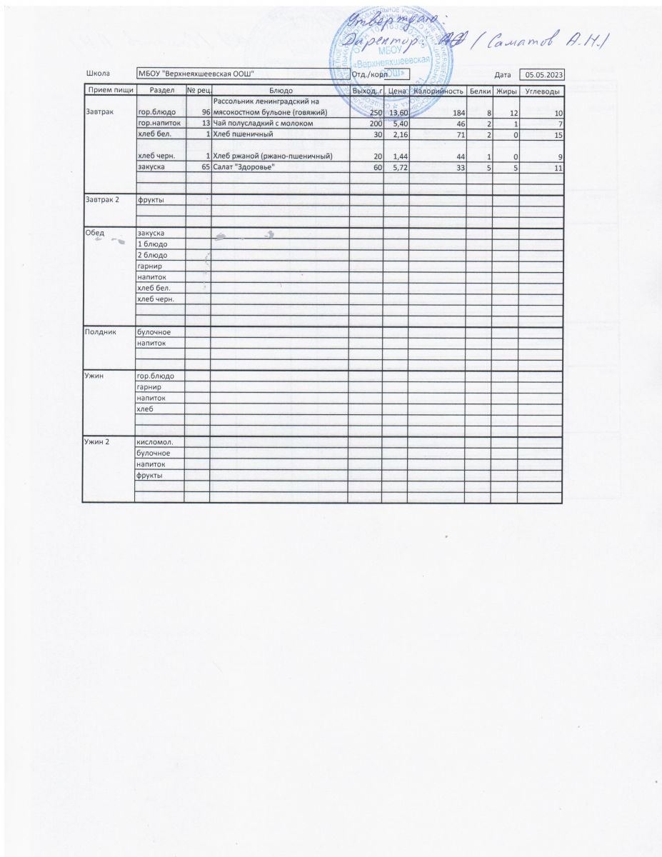Однодневное меню на 05.10.2023 Однодневное меню на 06.10.2023 Однодневное меню на 07.10.2023