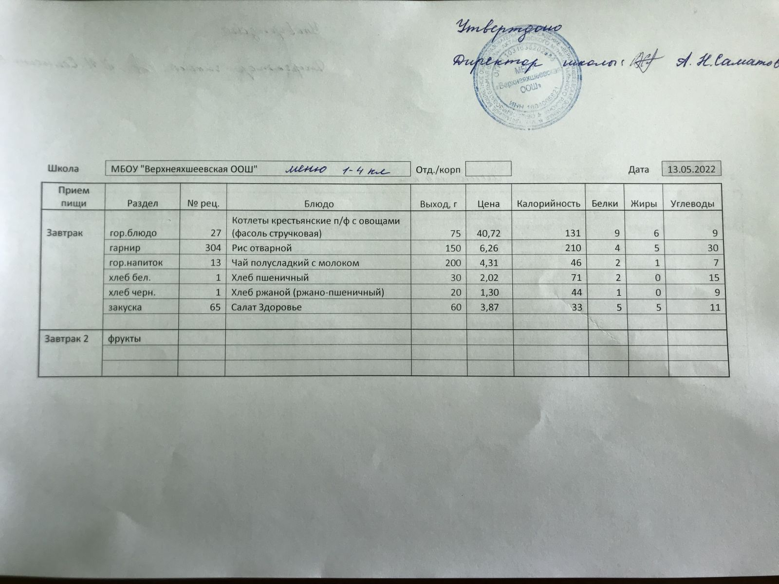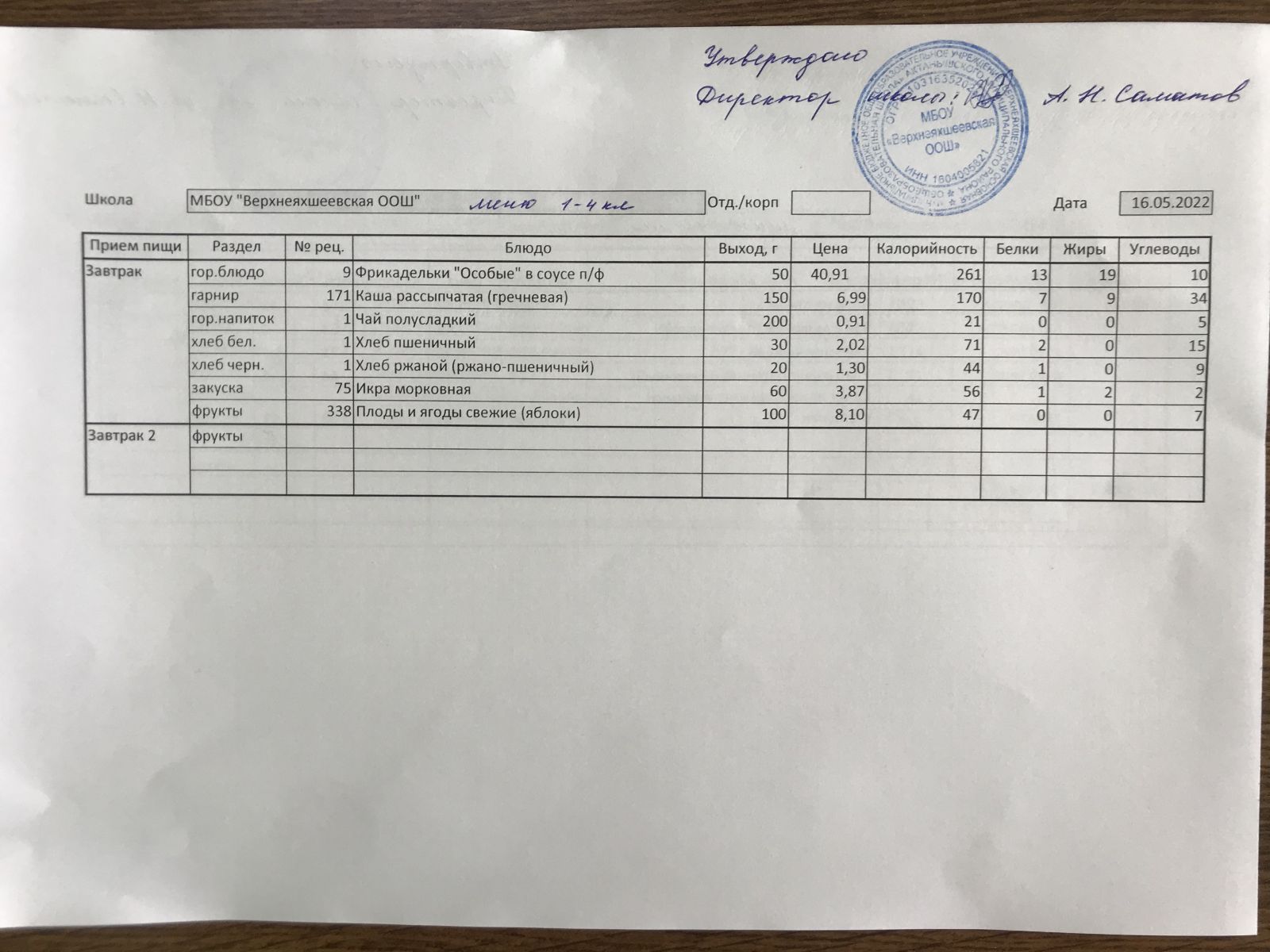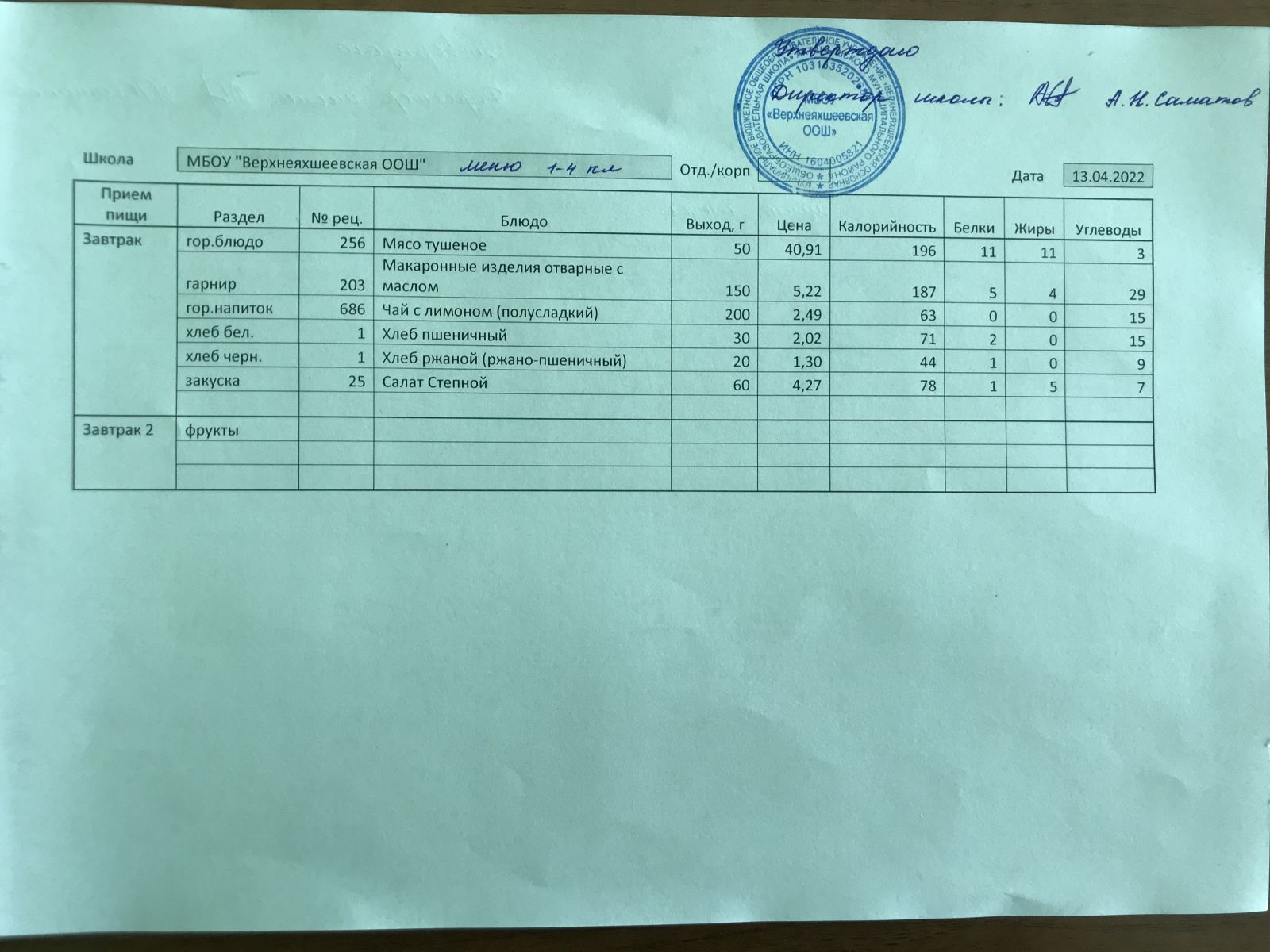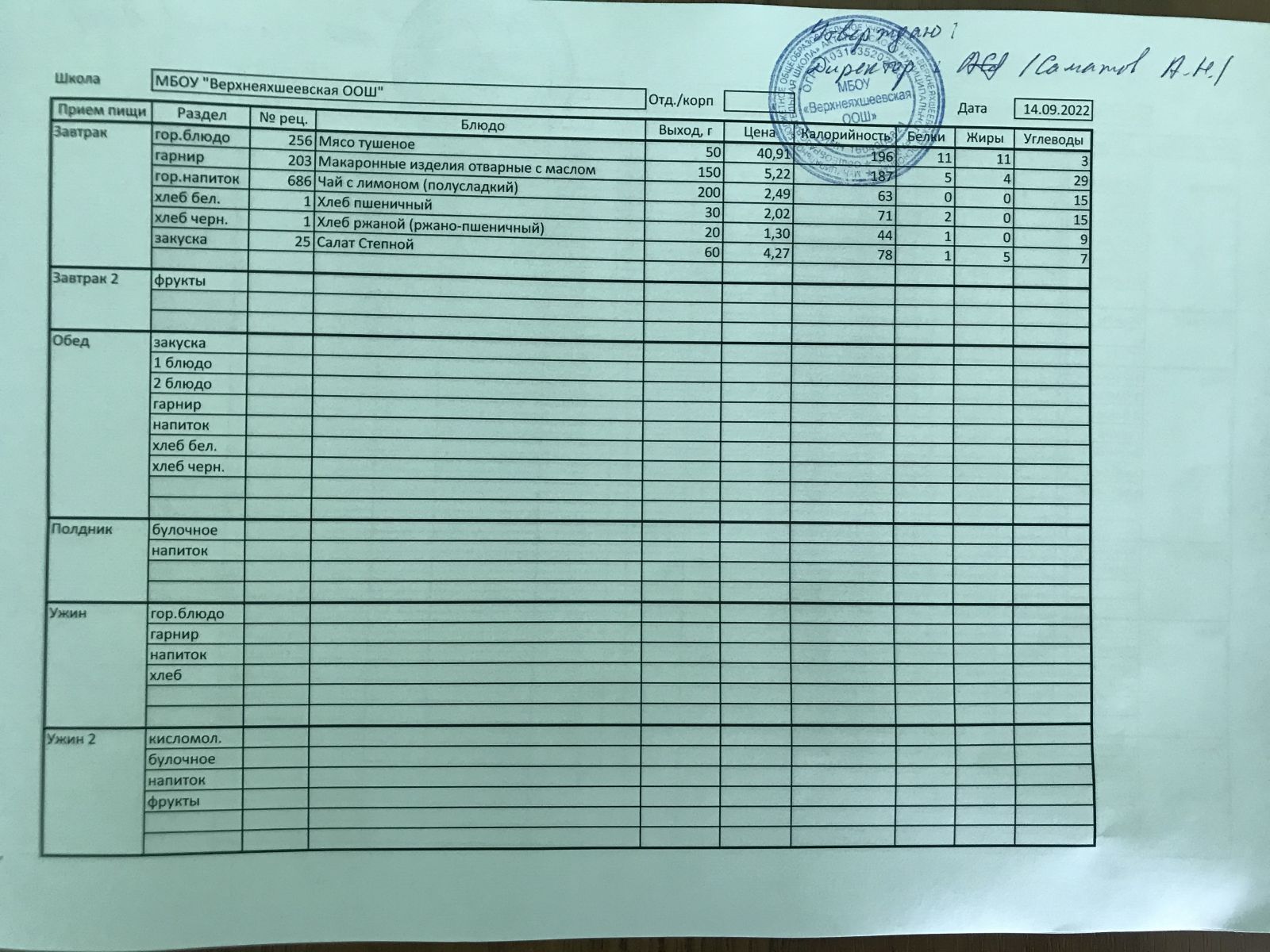 римерное двухнедельное меню с января 2022 года 5-11 кл