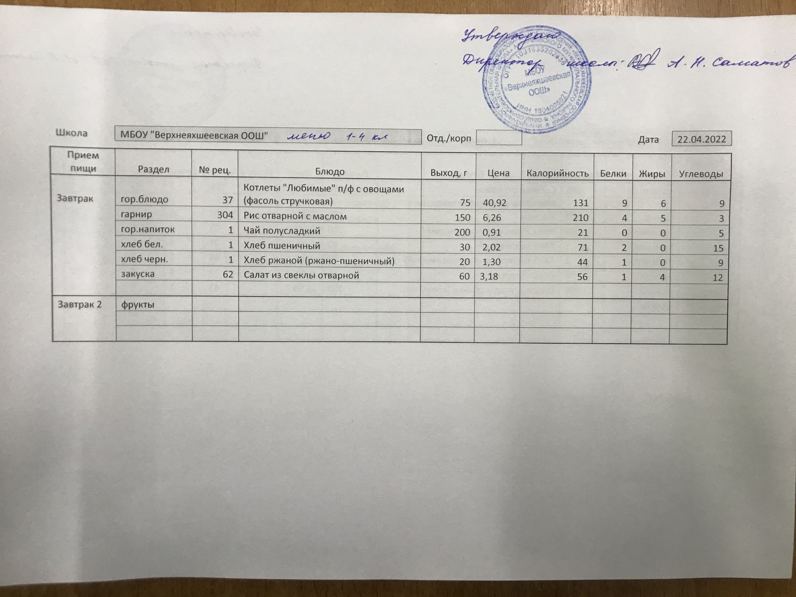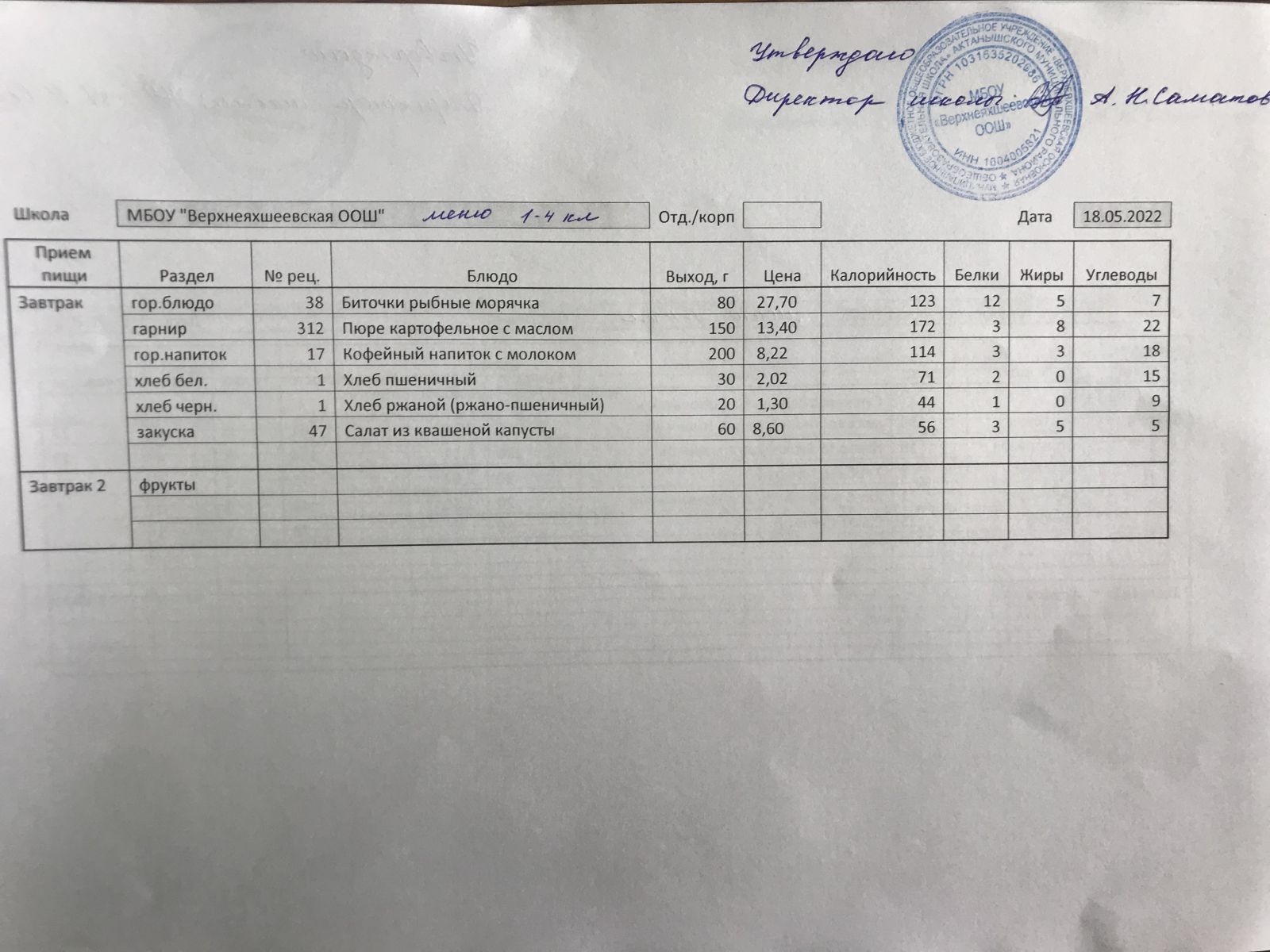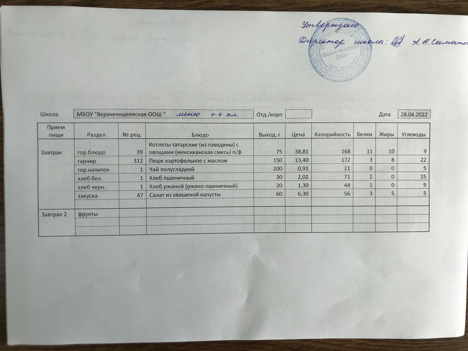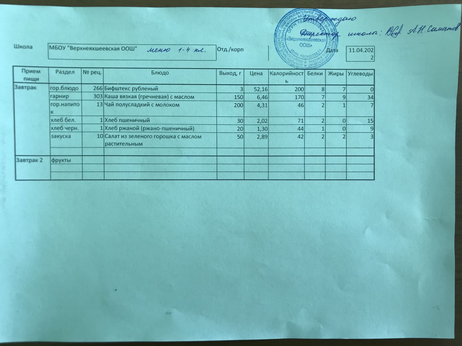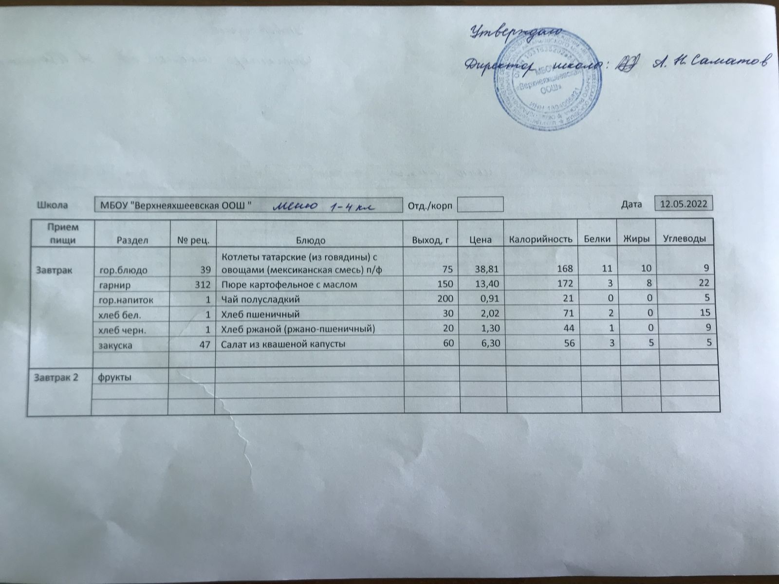 римерное двухнедельное меню с января 2022 года 5-11 кл