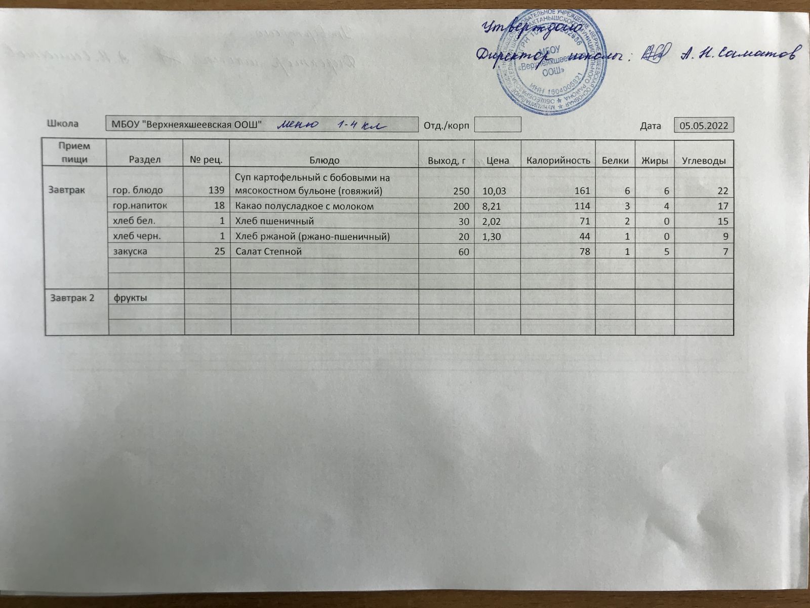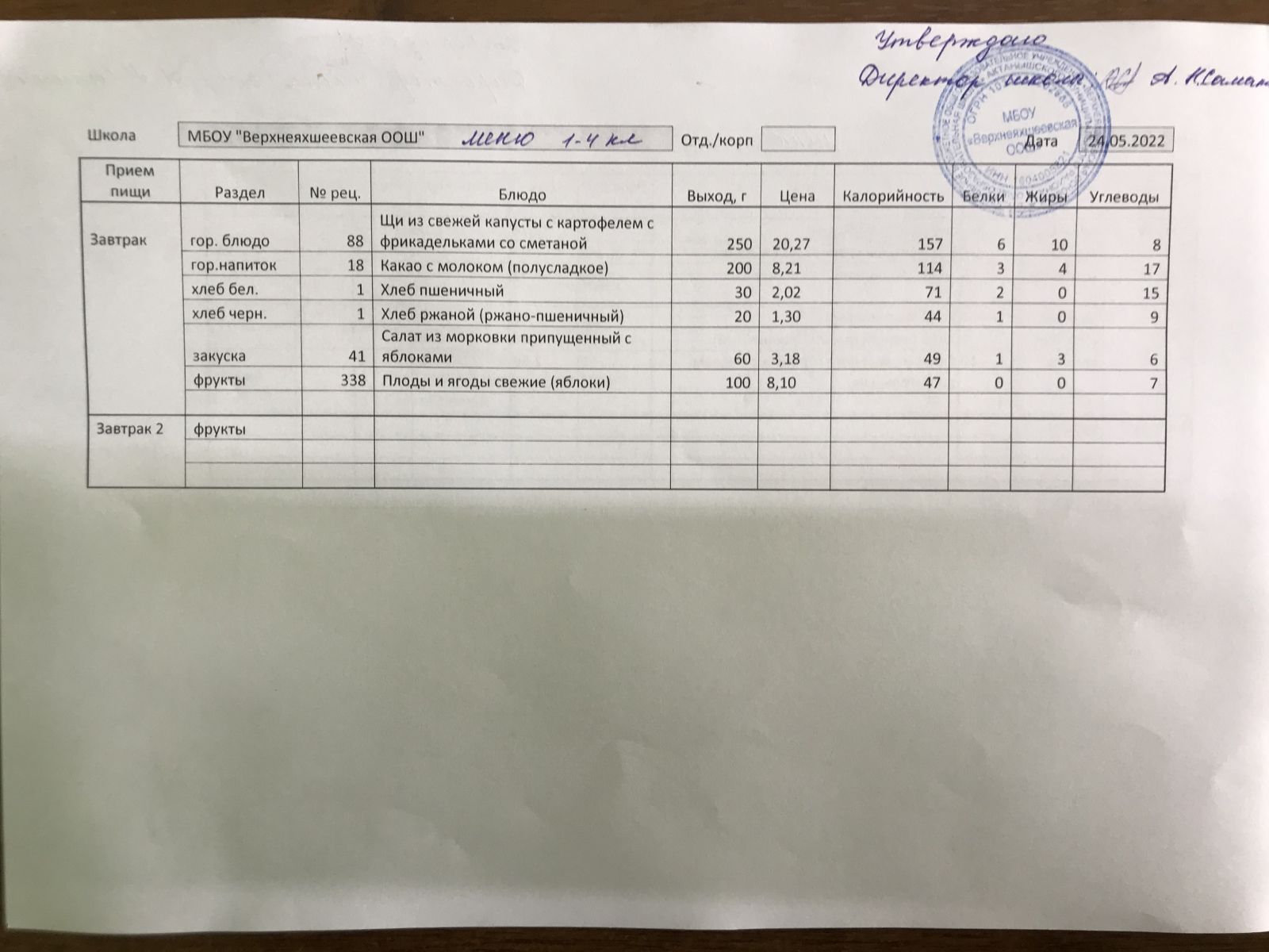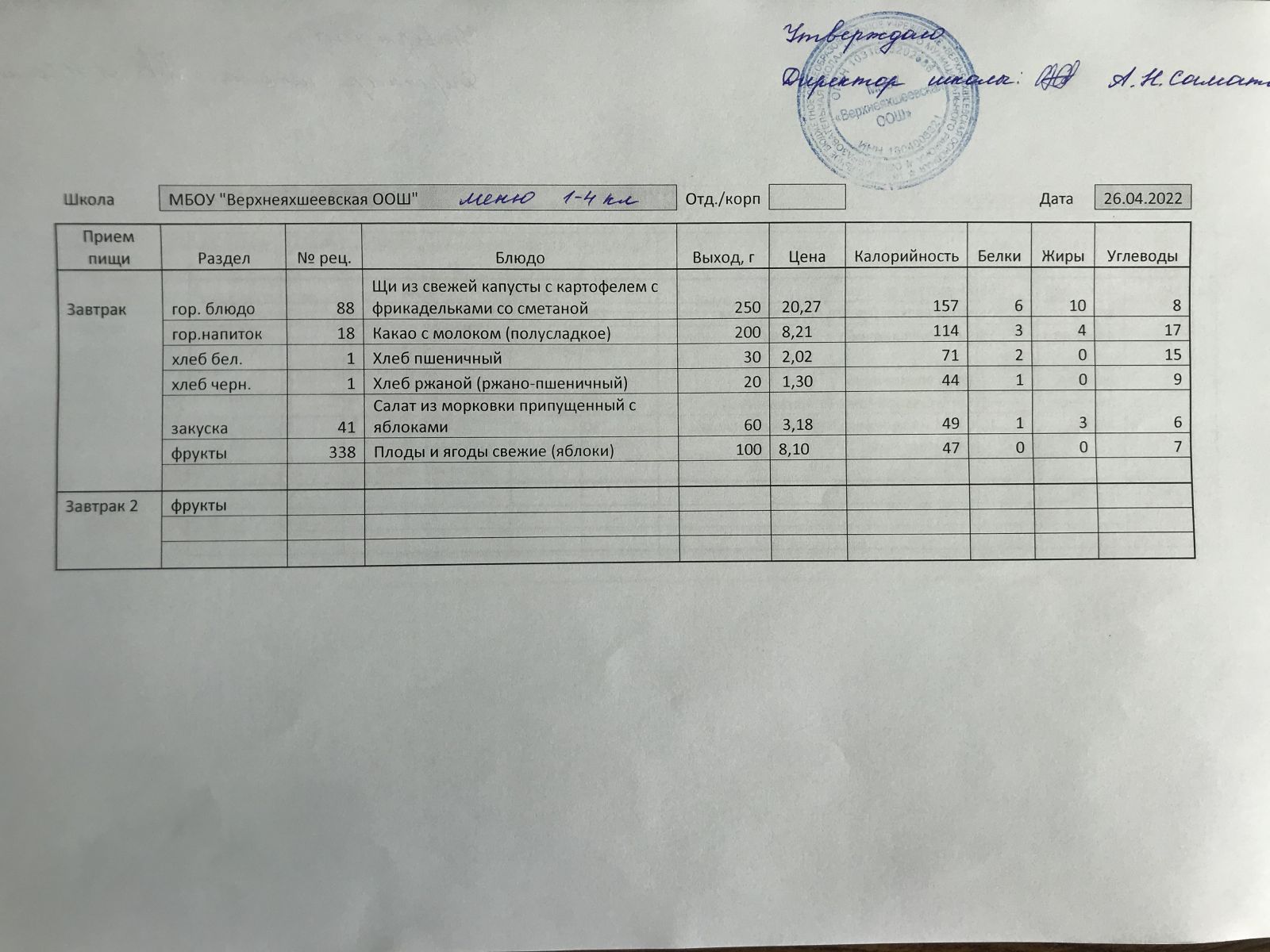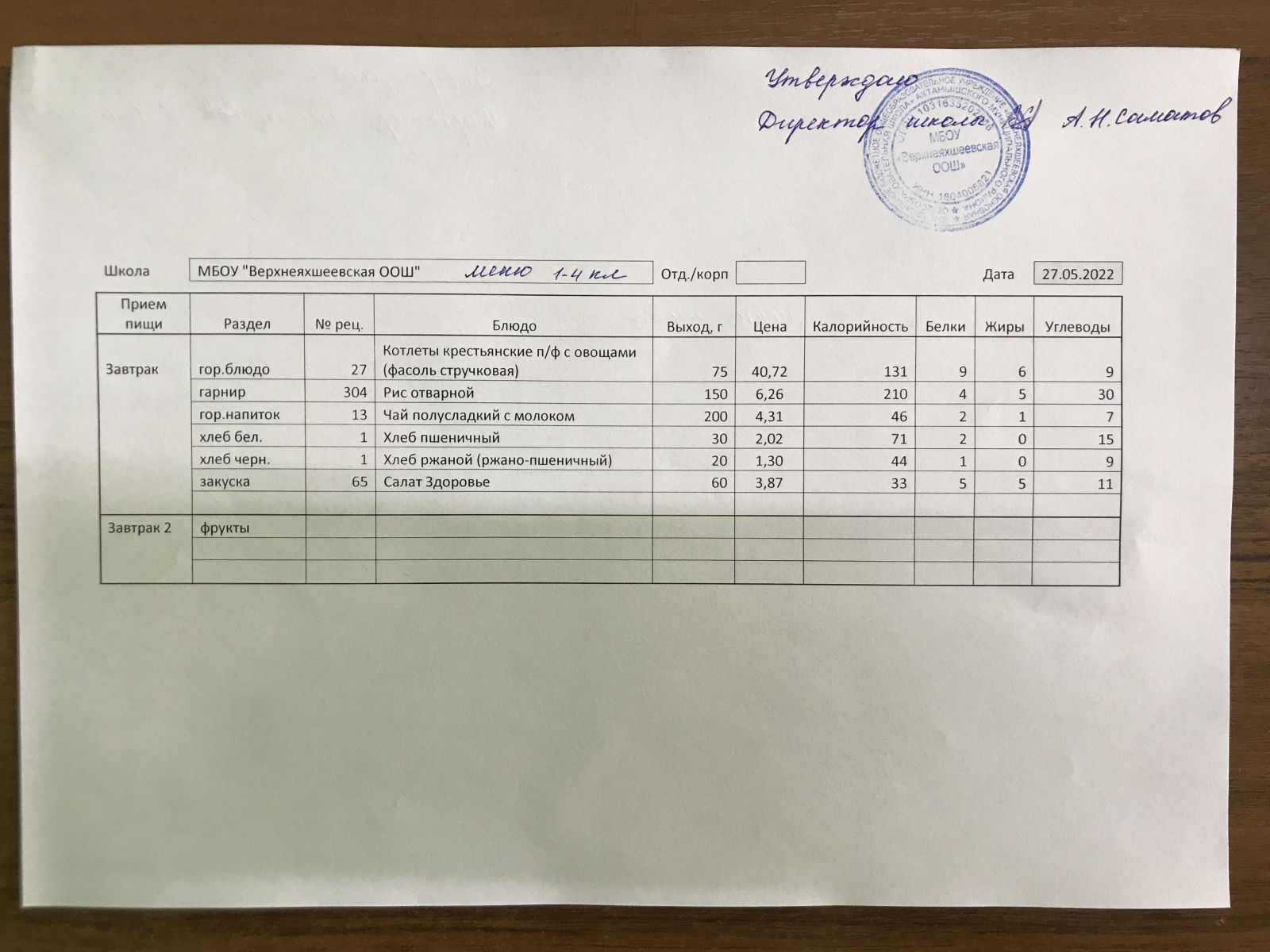 римерное двухнедельное меню с января 2022 года 5-11 кл