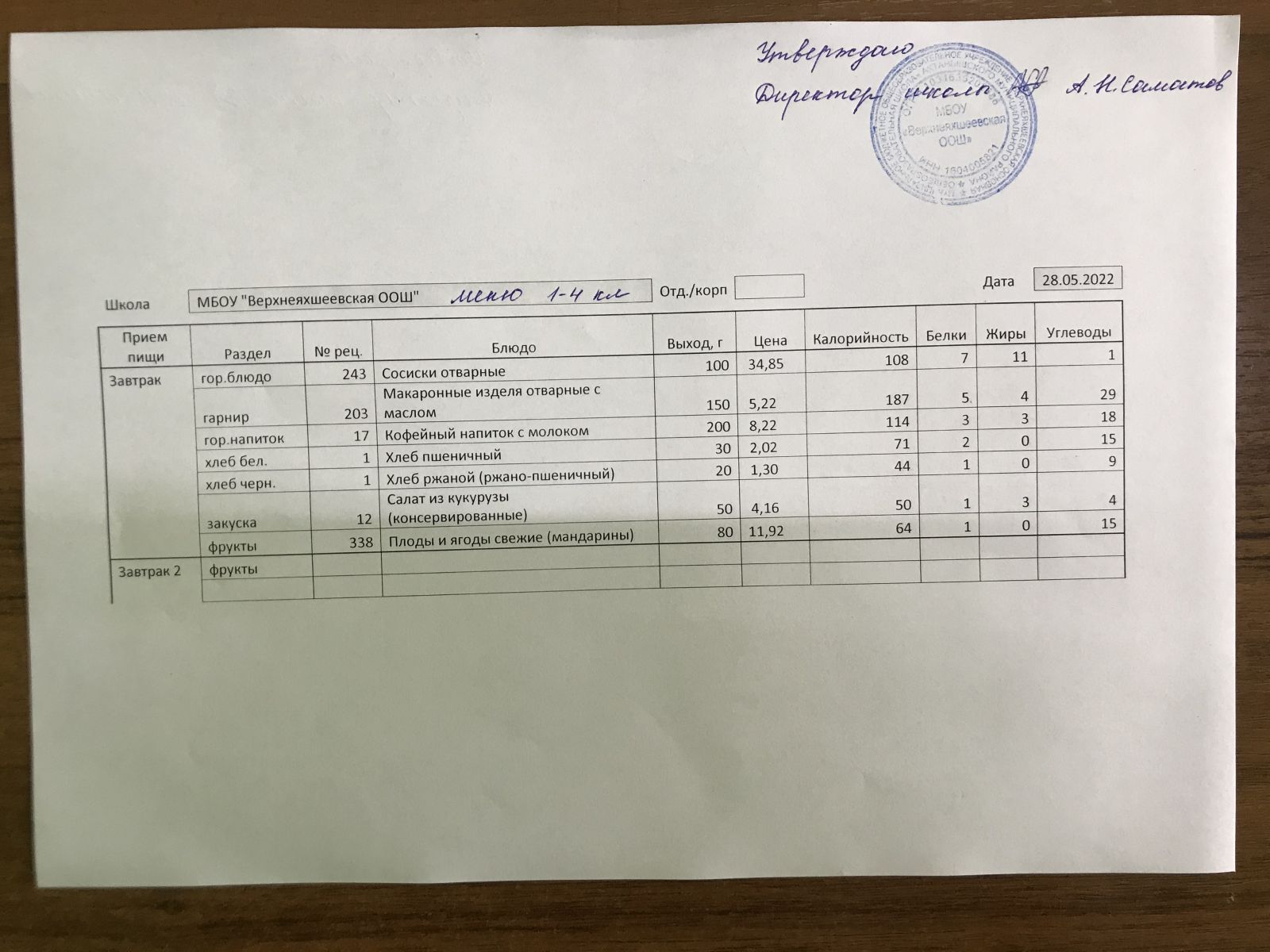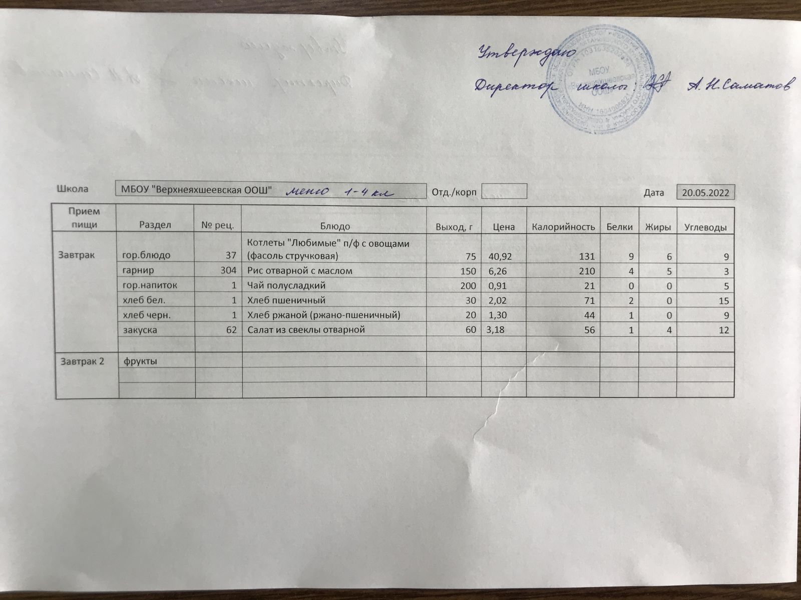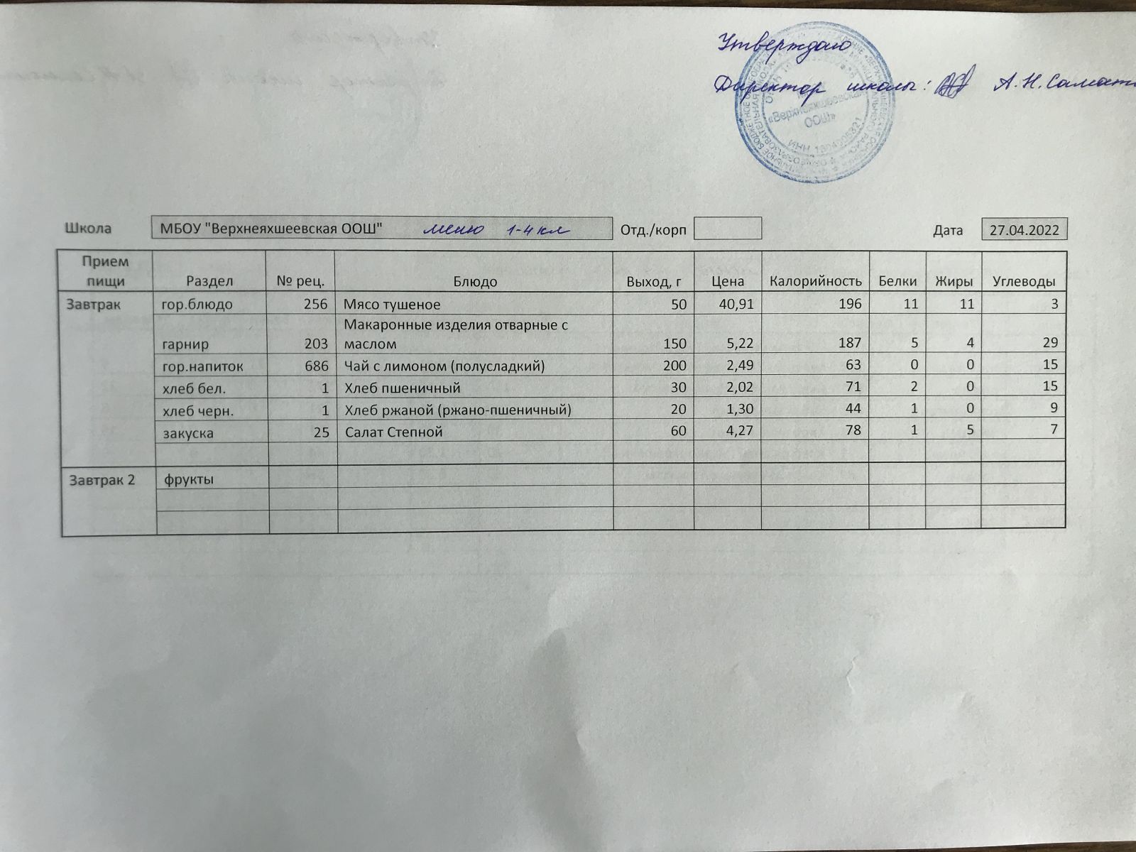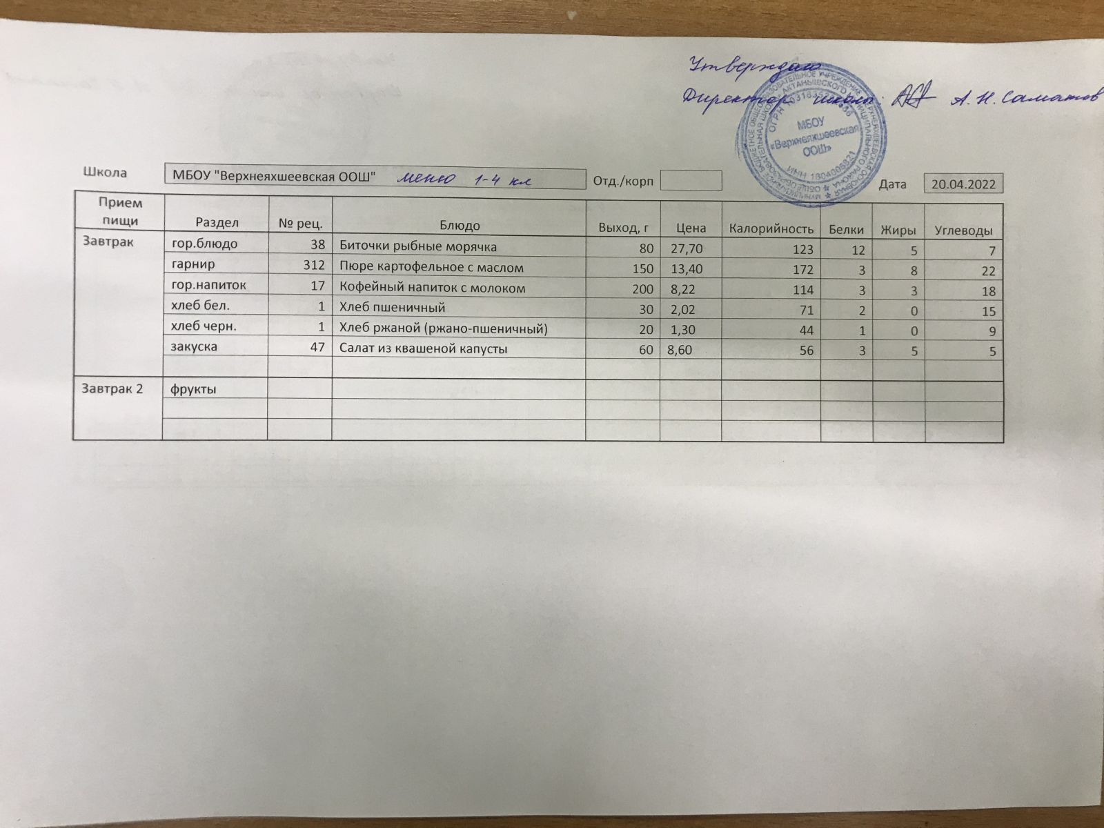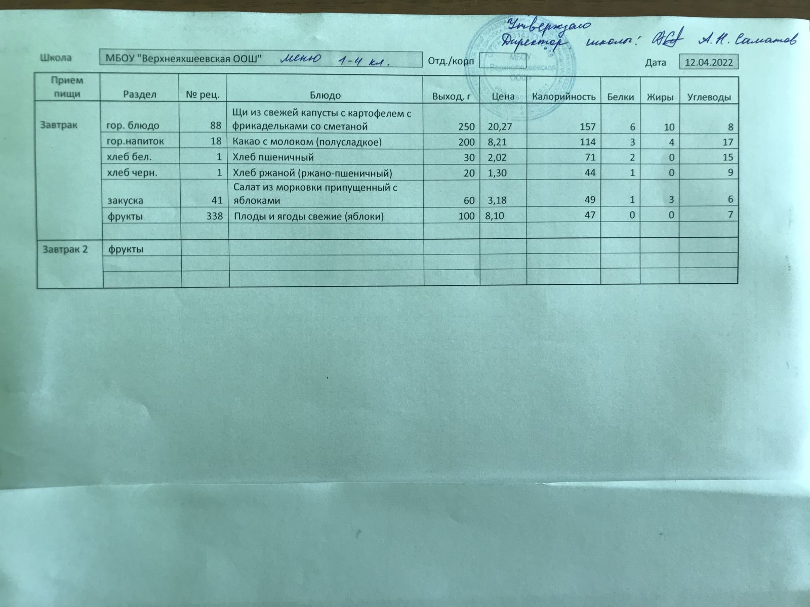 римерное двухнедельное меню с января 2022 года 5-11 кл