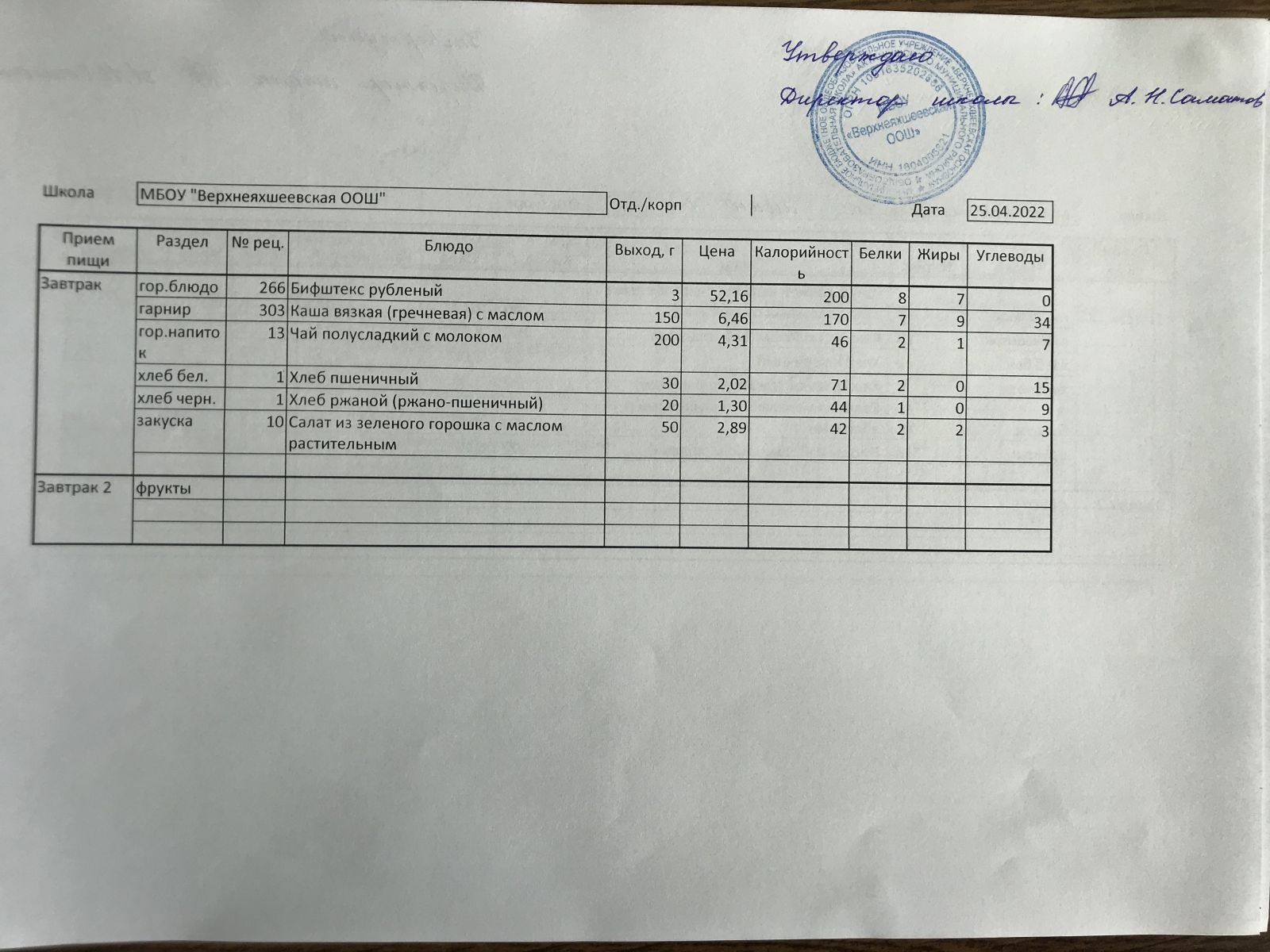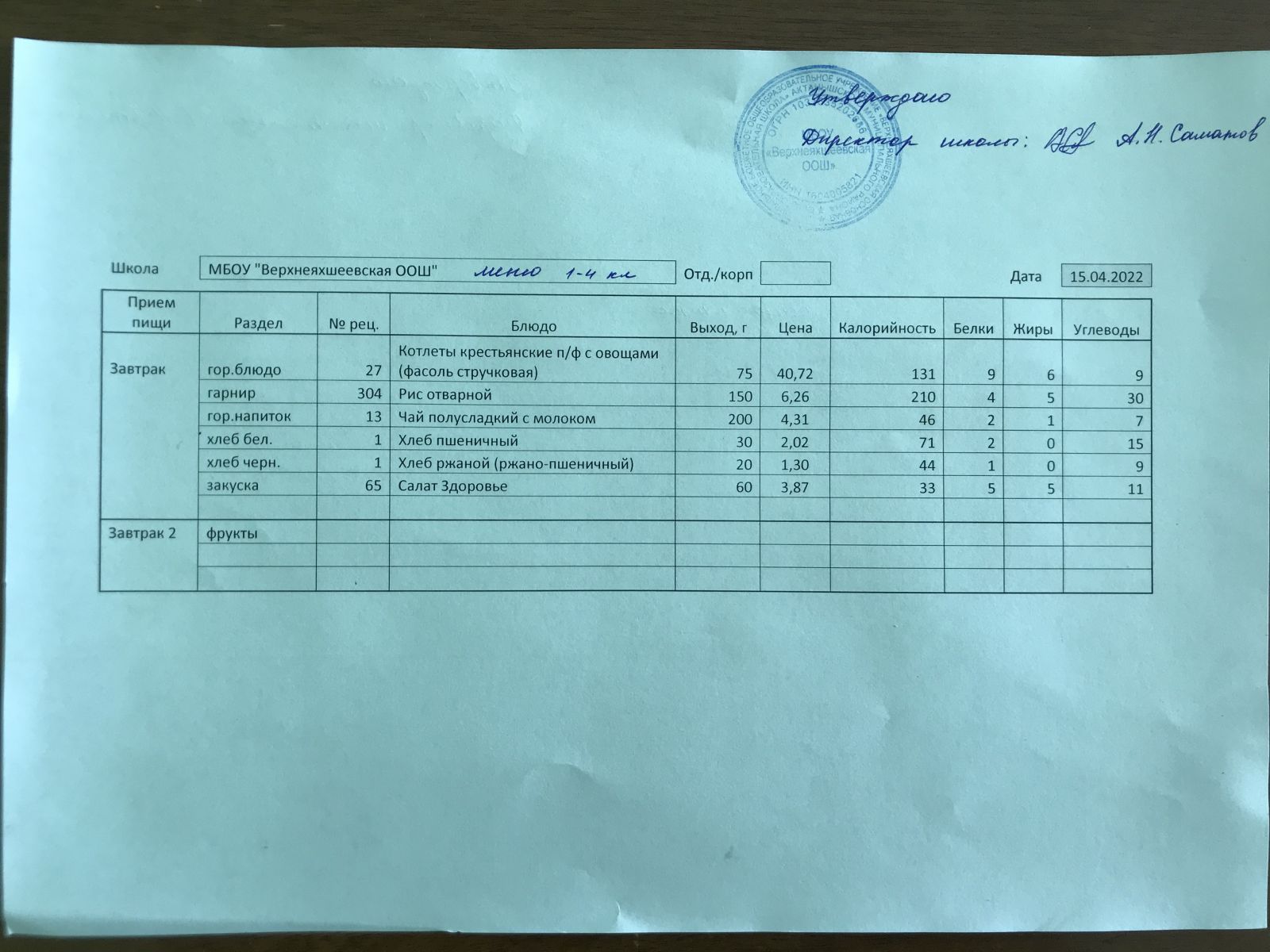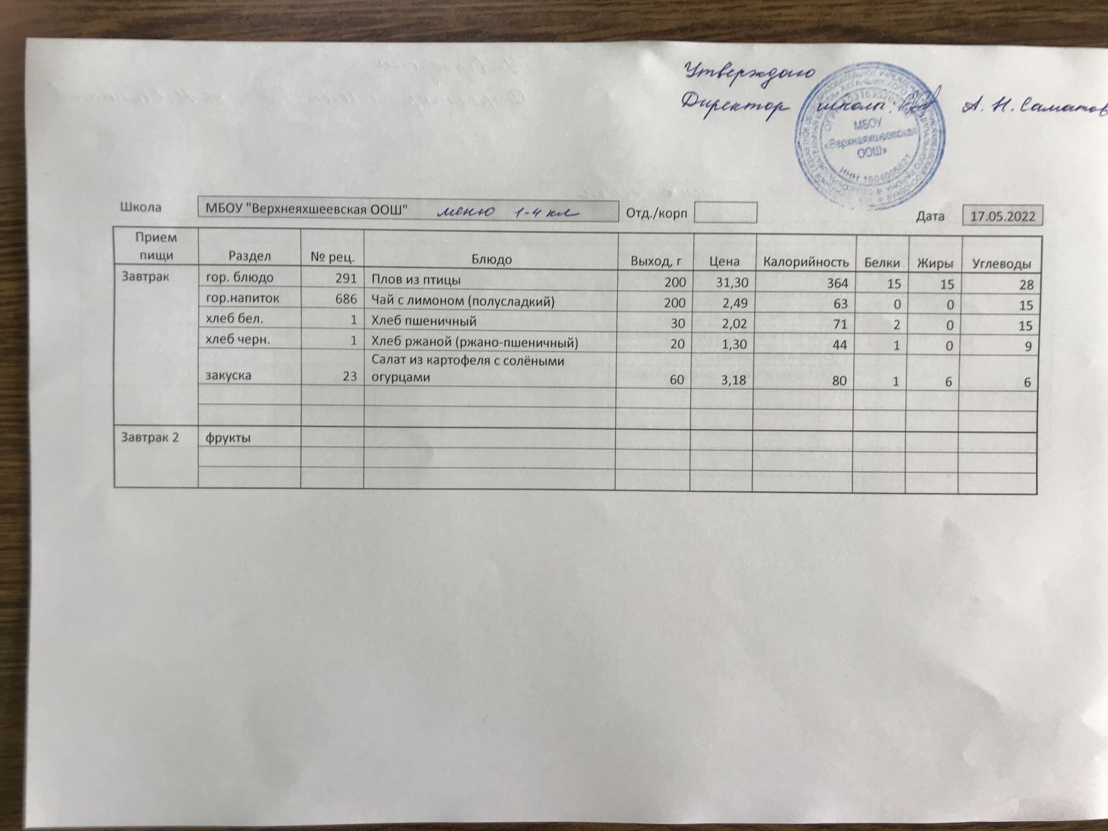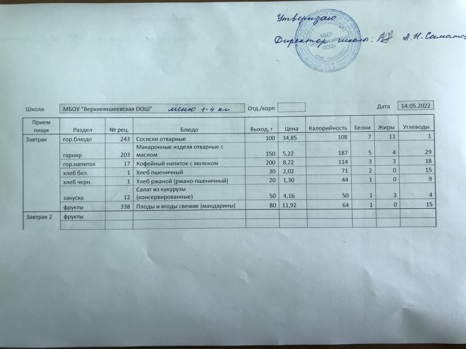 римерное двухнедельное меню с января 2022 года 5-11 кл