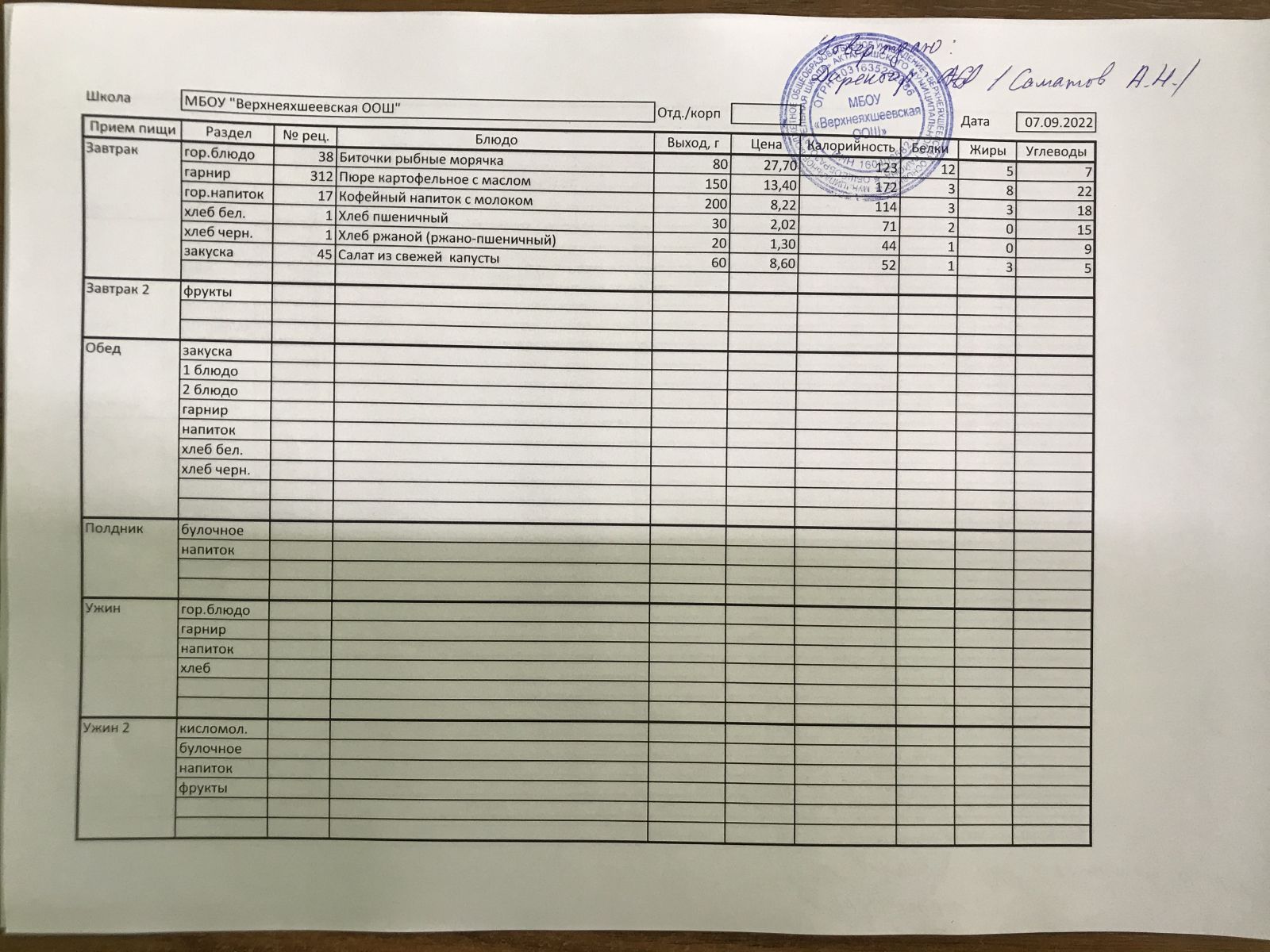 Однодневное меню на 07.09.2023 Однодневное меню на 08.09.2023 Однодневное меню на 09.09.2023