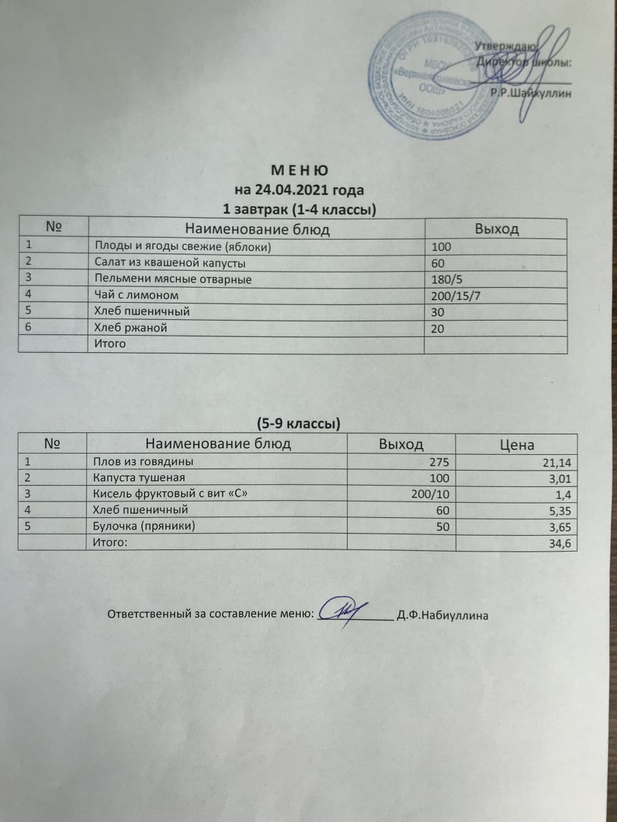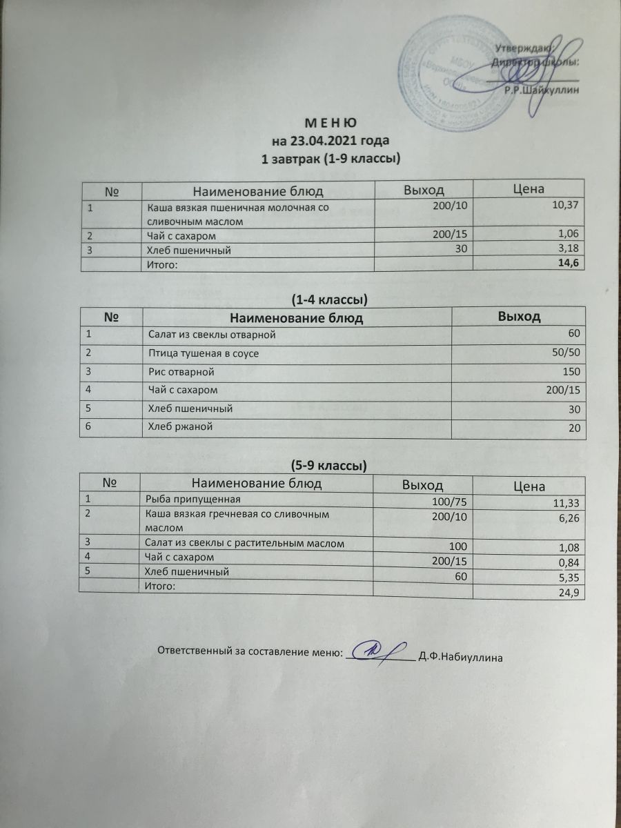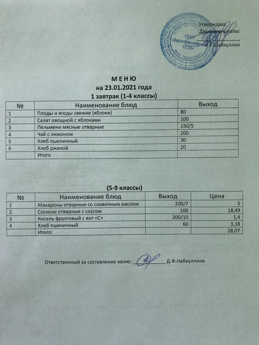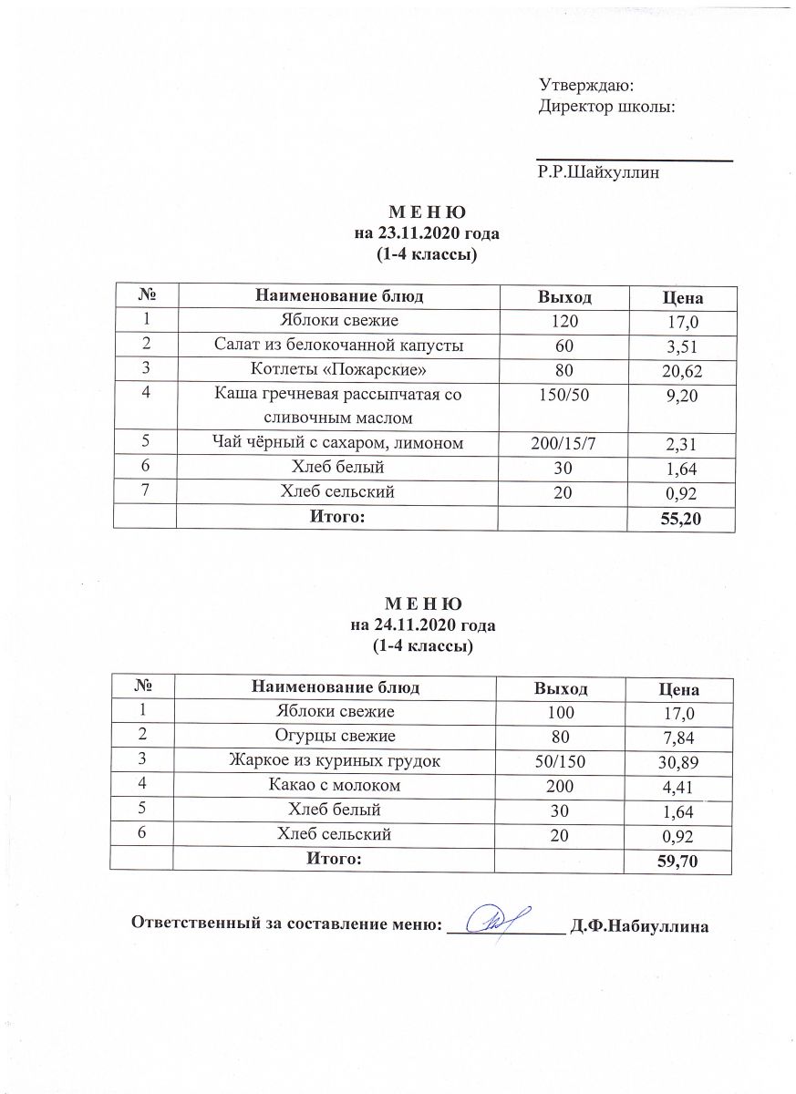 Меню на 23.11.2020 и 24.11.2020