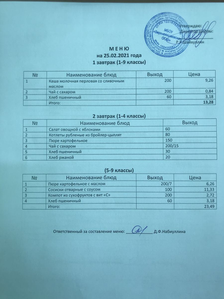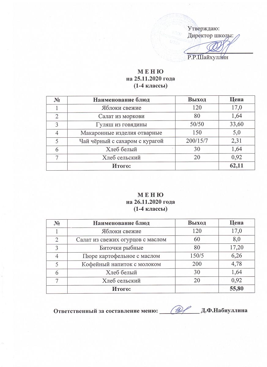 Меню на 25.11.2020 и 26.11.2020