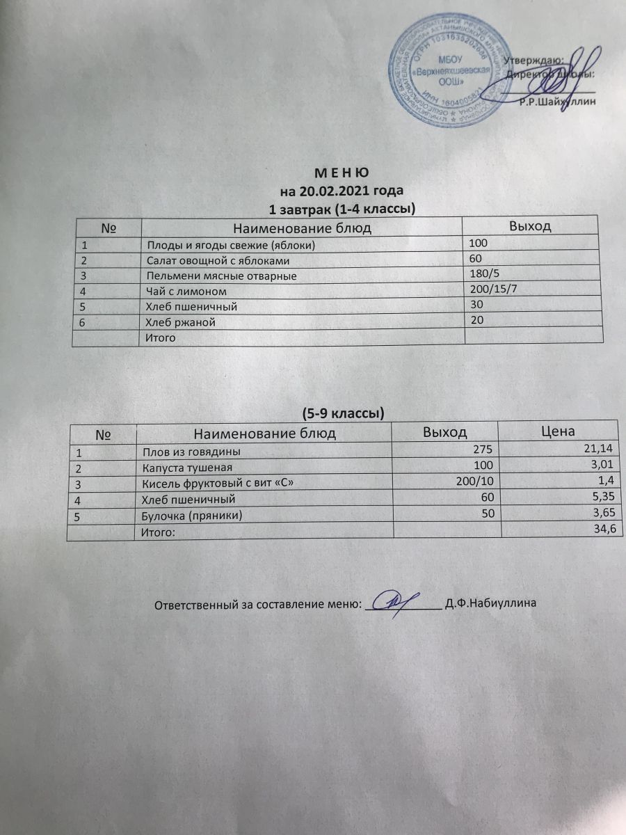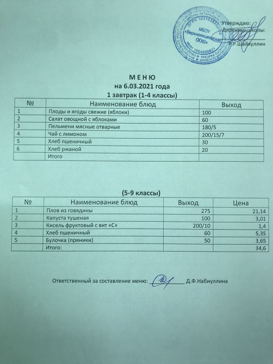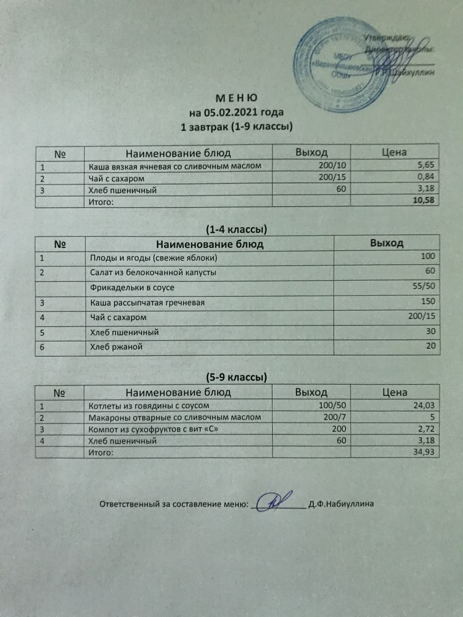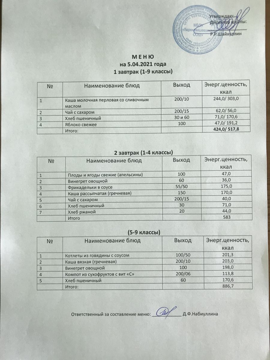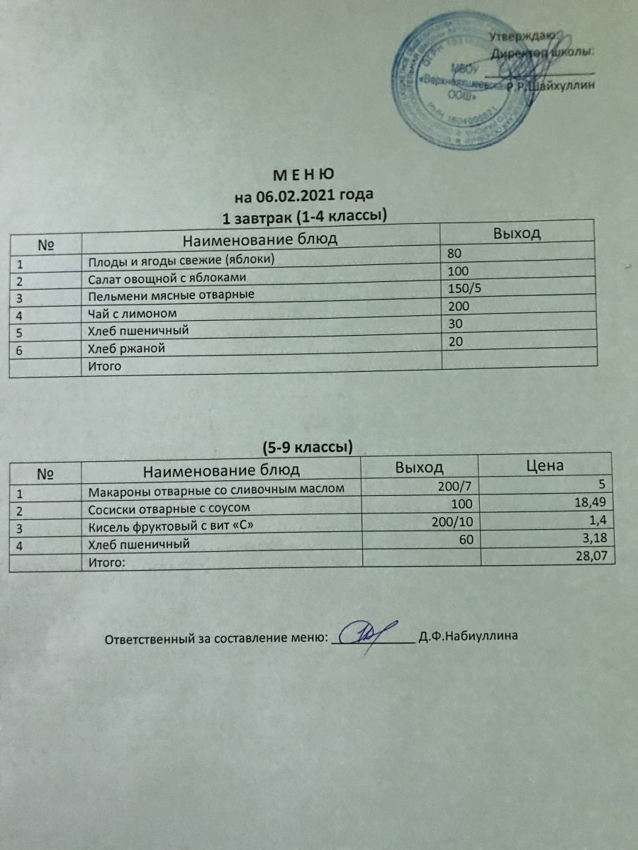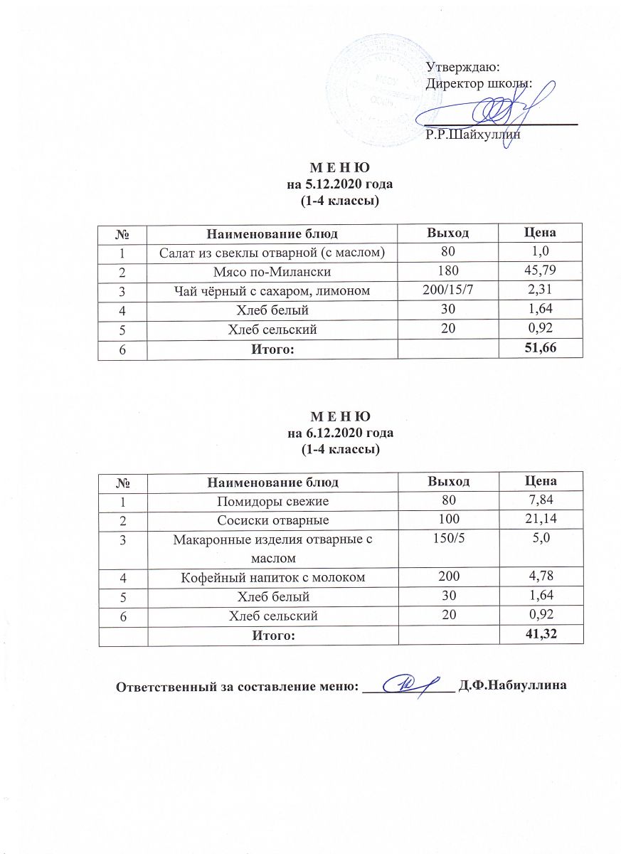 Меню на 05.12.2020 и 06.12.2020