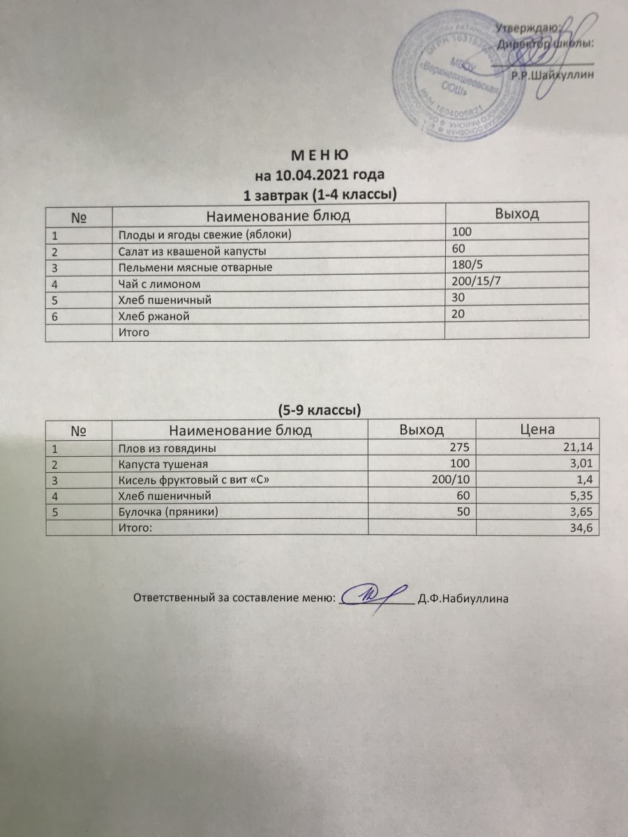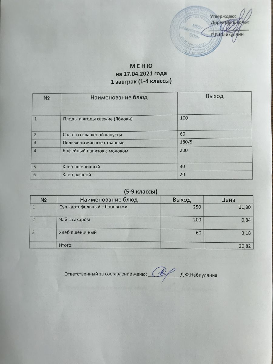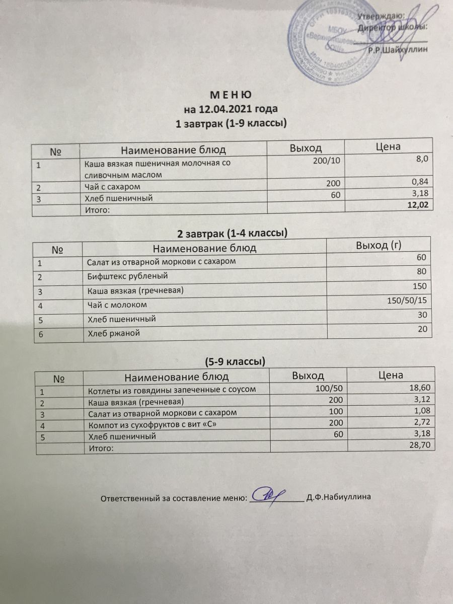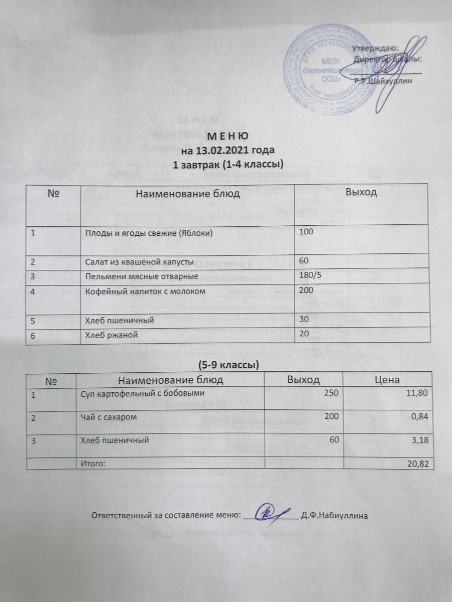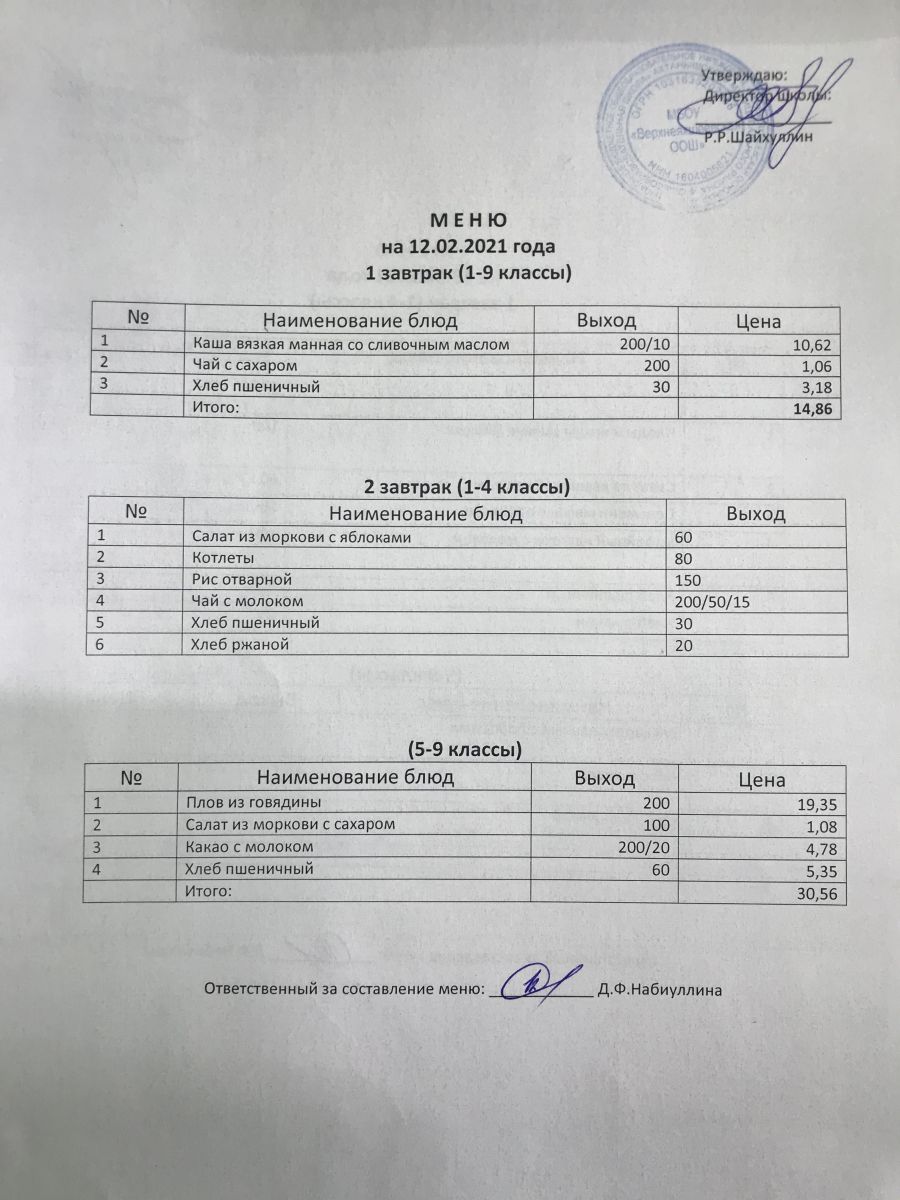 Меню на 05.12.2020 и 06.12.2020
